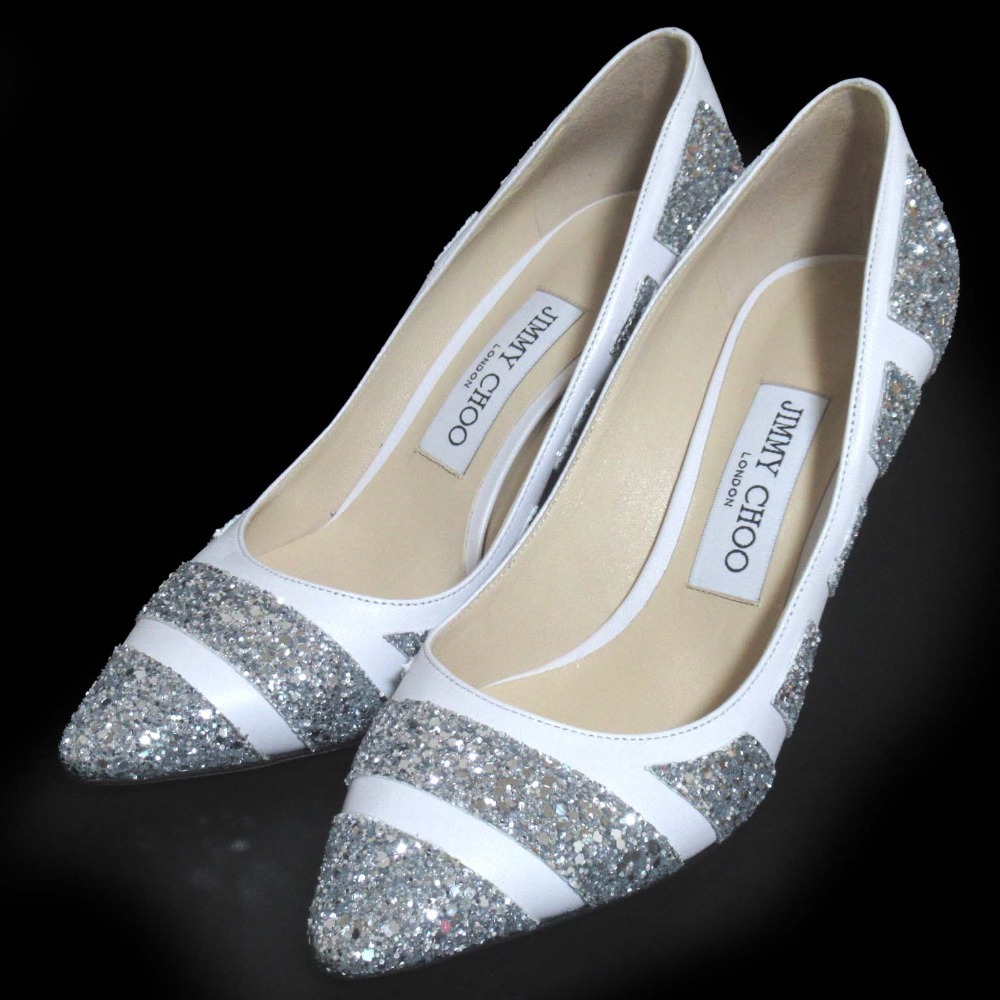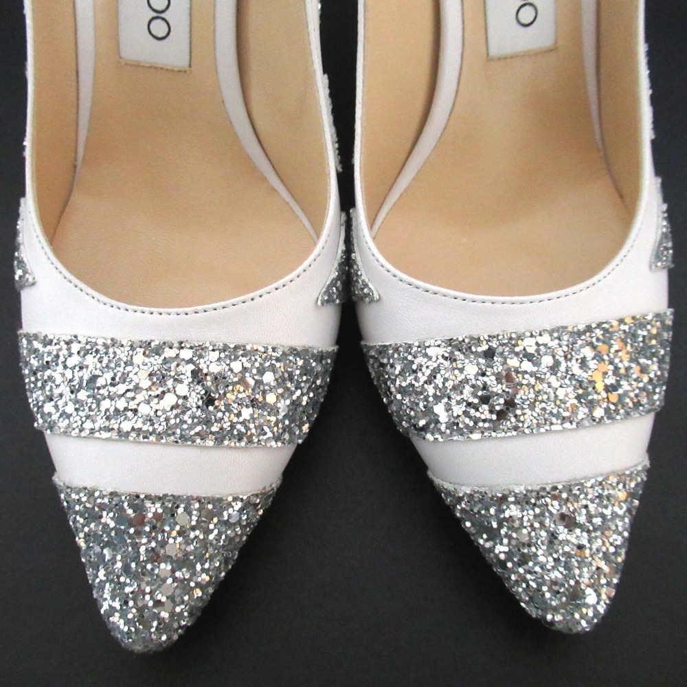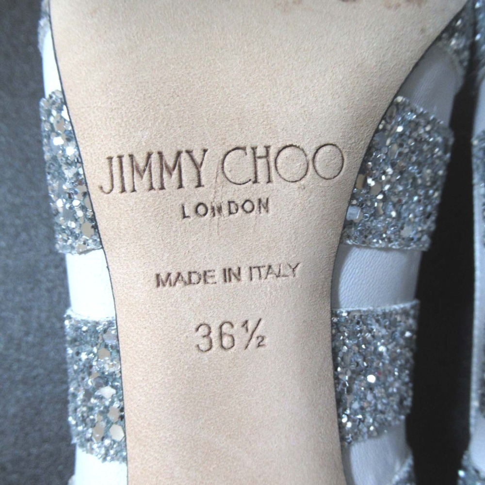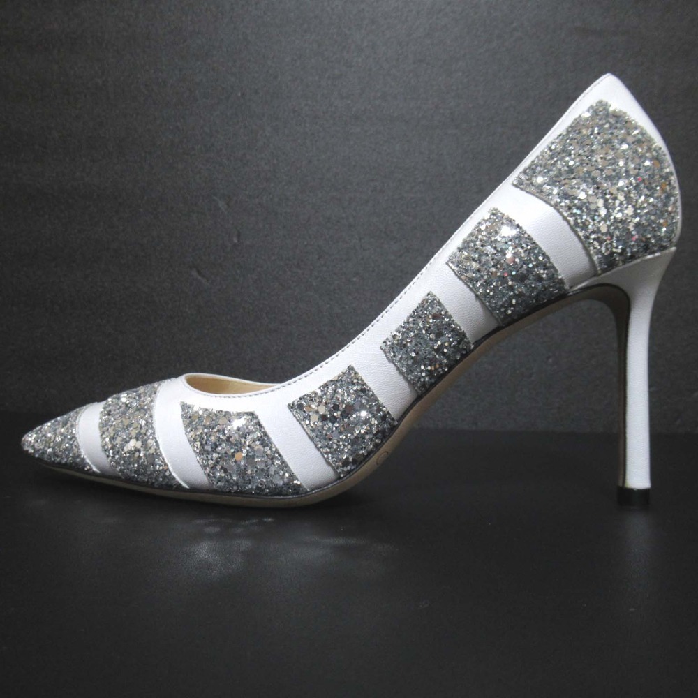 商品名:JIMMY CHOO ジミーチュウ レザー ポインテッドトゥ ハイヒール グリッター パンプス 36.5 23.5cm シルバー×ホワイト