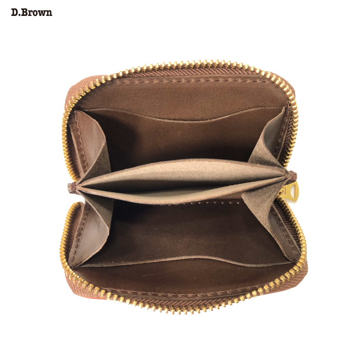 ☆表面に新喜皮革社オイルコードバン(グレージング加工)、中作りを栃レザー社オイルレザーと贅沢な革の使用をしたラウンドファスナーコインケースです。
