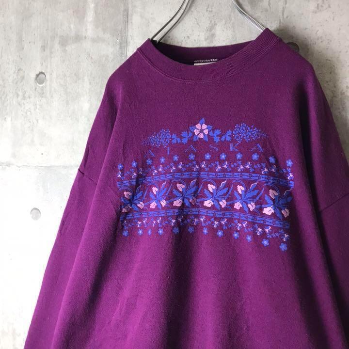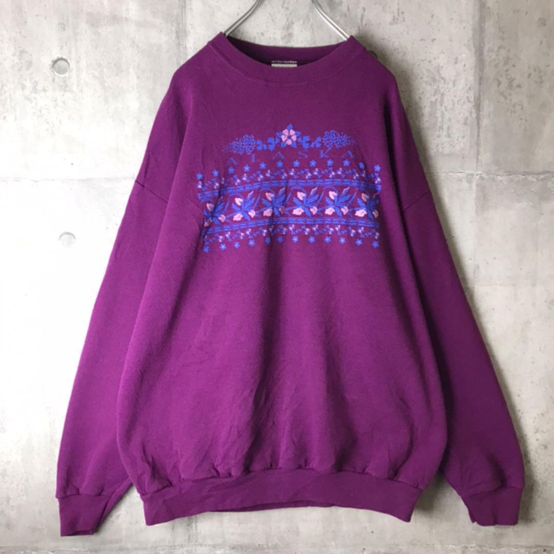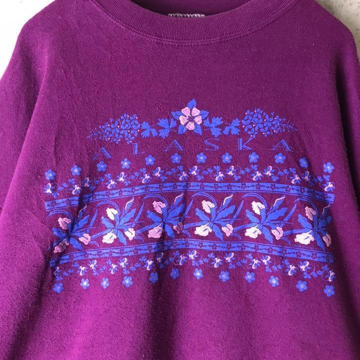 レトロ可愛い アメリカ製スウェットトレーナー 花 プリント 90s オーバーサイズ