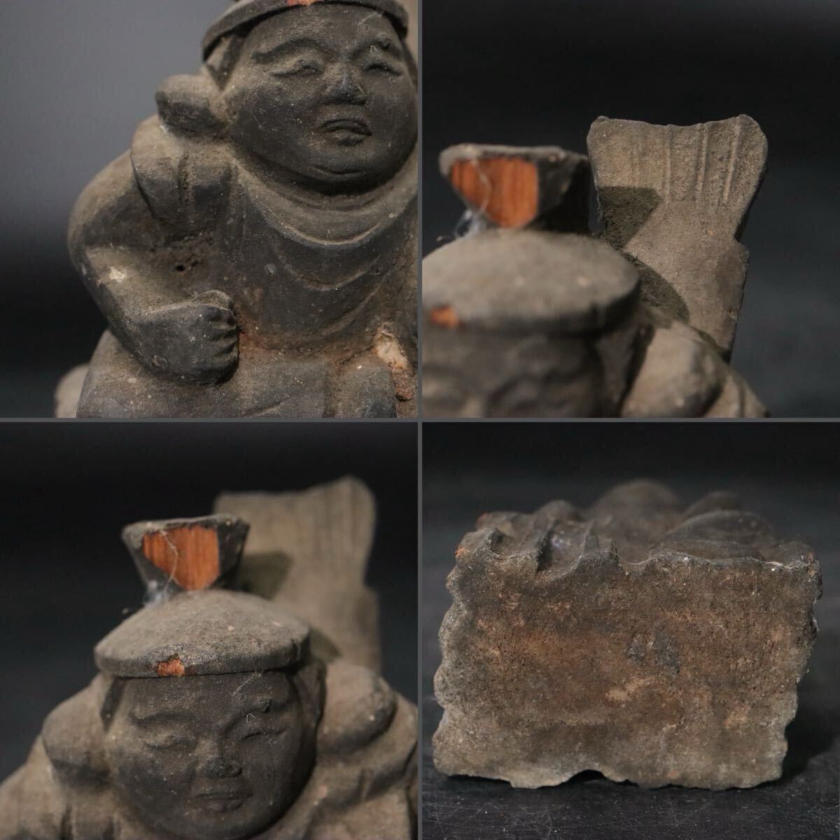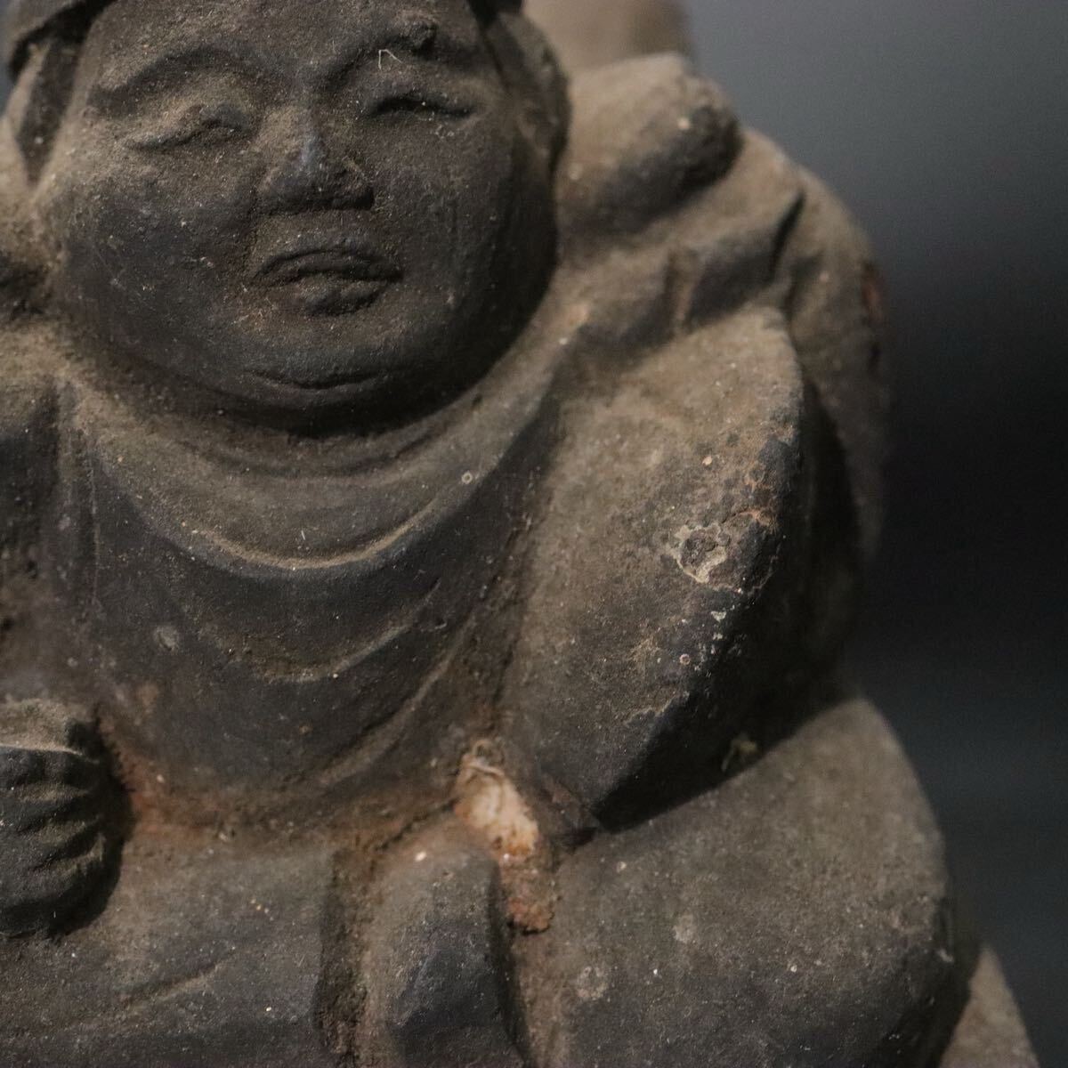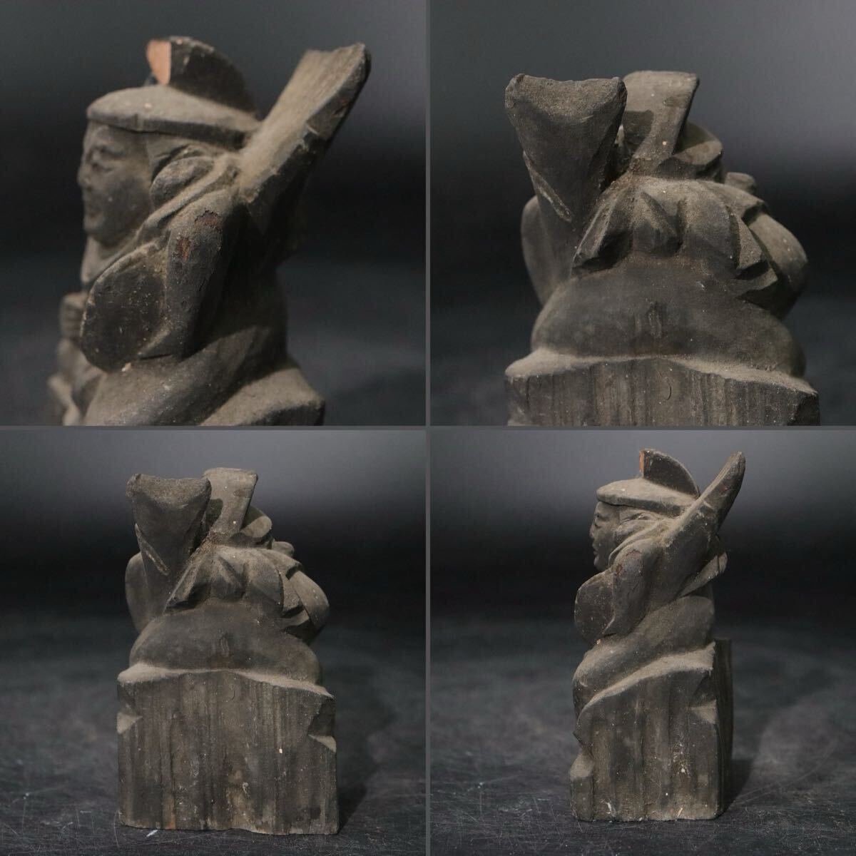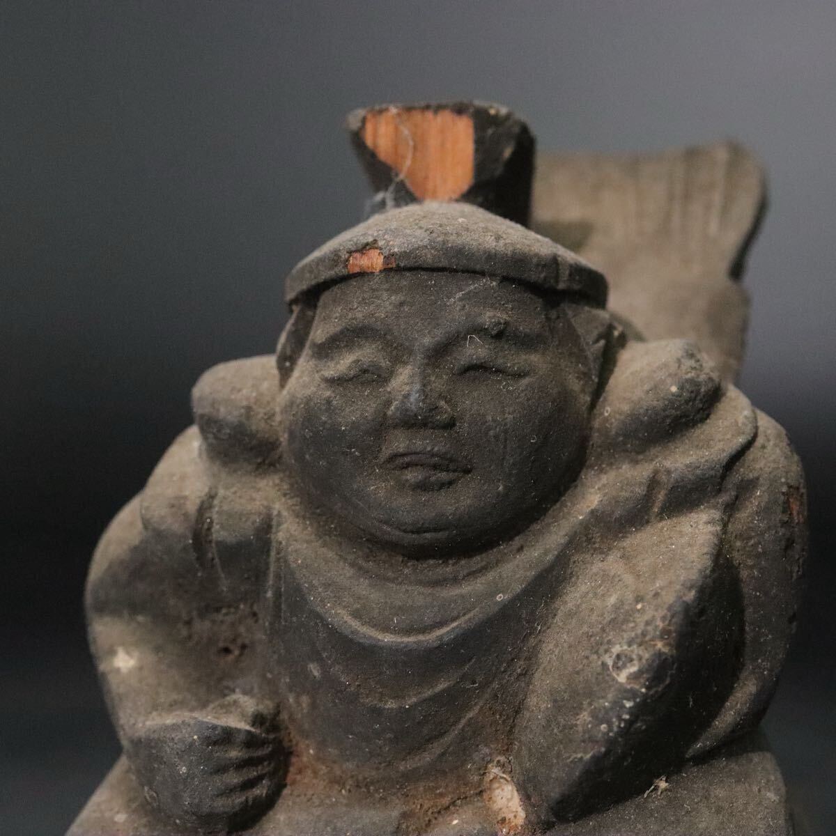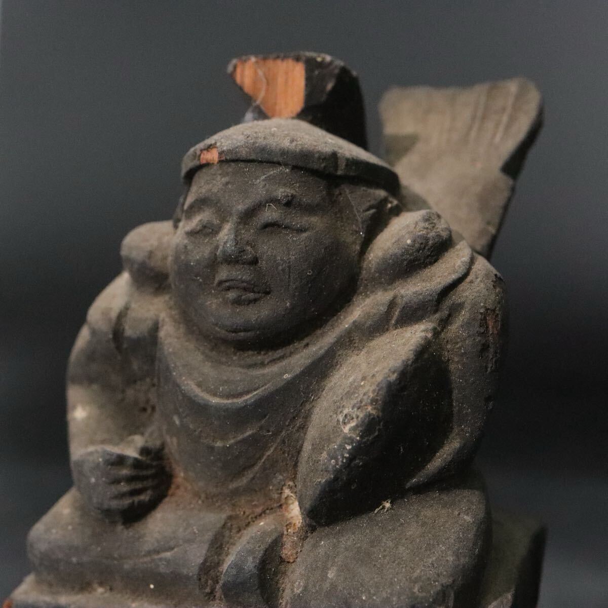 時代 木彫 恵比寿天 像 ガラス板嵌め 箱付 / 民仏 民衆仏 竈神 仏像 天然木置物 .B916 |