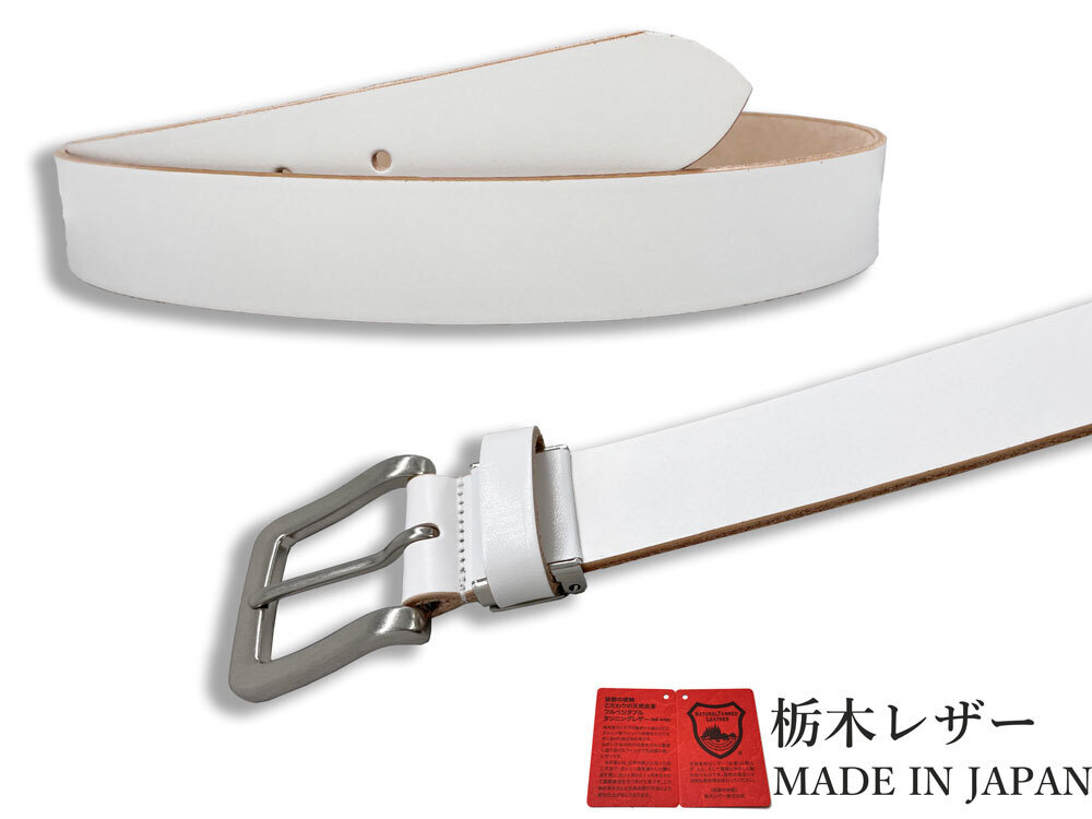 1円スタート 訳あり 新品 アウトレット B品 栃木レザーベルト Mサイズ 牛革 本革 メンズ カジュアル 国産 日本製 35mm 無地 白 w003bMWH