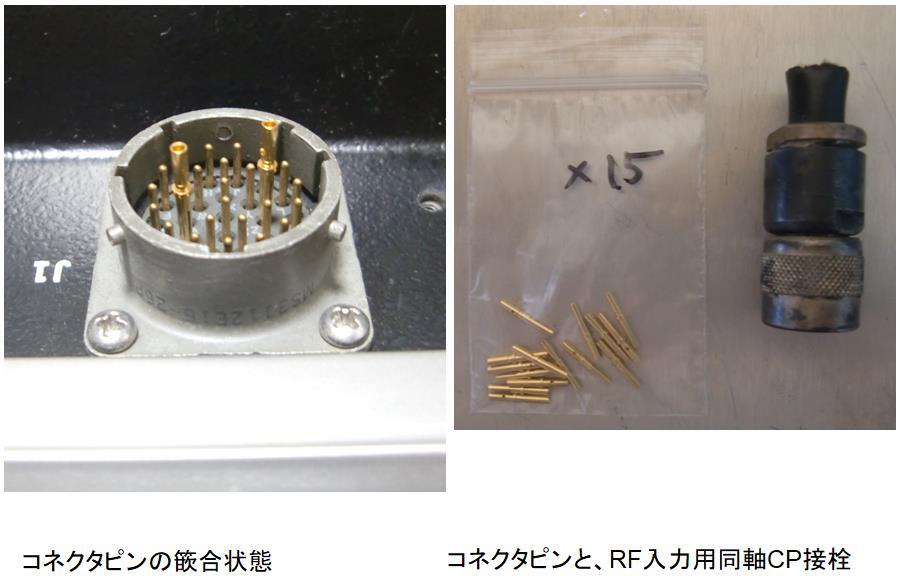 制御用コネクタJ1の各ピンの機能の説明資料を添付します。J1用のコネクタは入手が容易でないので、代替としてJ1の各ピンに篏合する金メッキされたコネクタピンを添付します。また、RF入力用のC接栓(中古)も添付します。