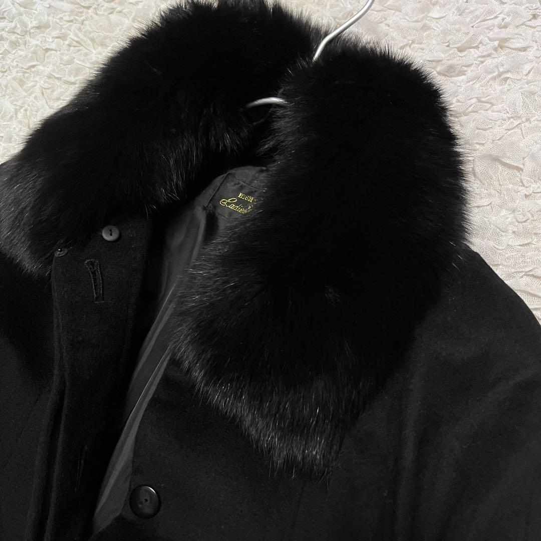 ■アイテム: カシミヤ15%【HIGH SENSE】ブラックコート フォックス毛皮 2way