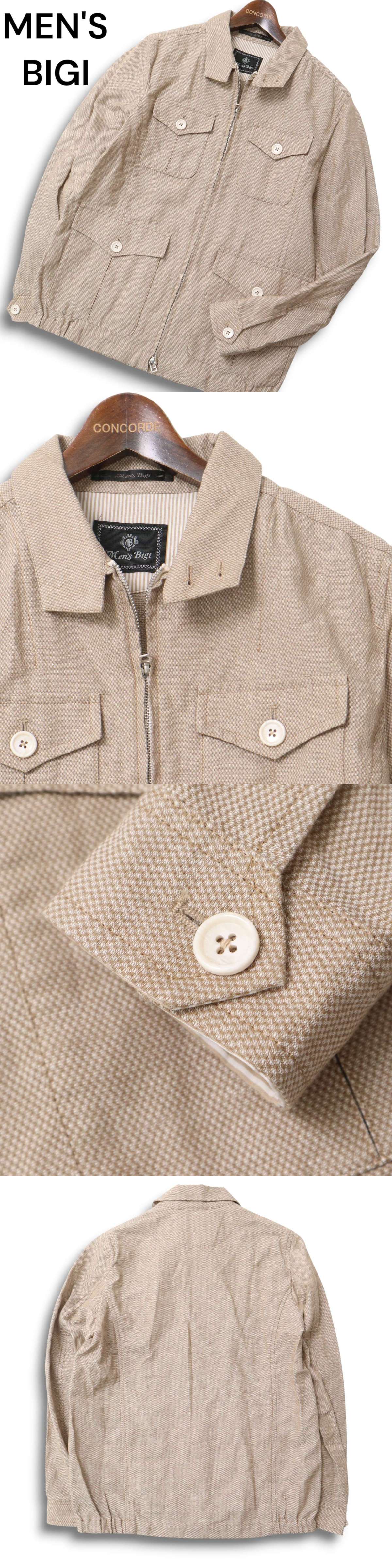 MEN'S BIGI メンズビギ 春夏 麻 リネン混★ ダブルジップ サファリ ジャケット ブルゾン Sz.M メンズ ベージュ