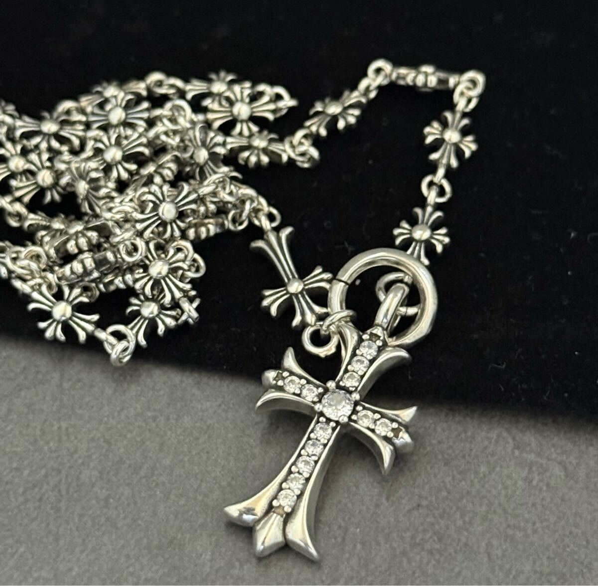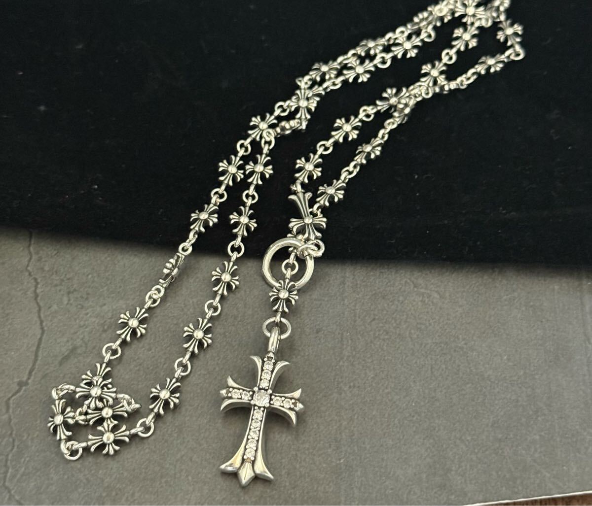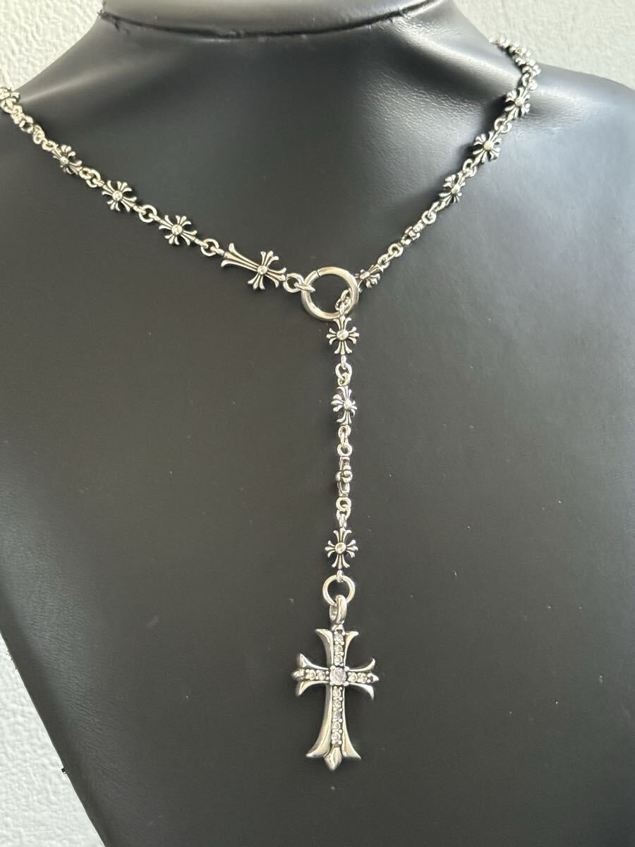 チェーンにもクロス模様が繊細に彫り込まれたオシャレなシルバーネックレスです!
