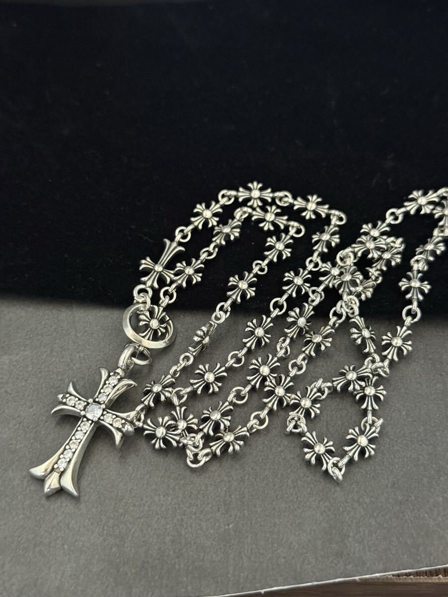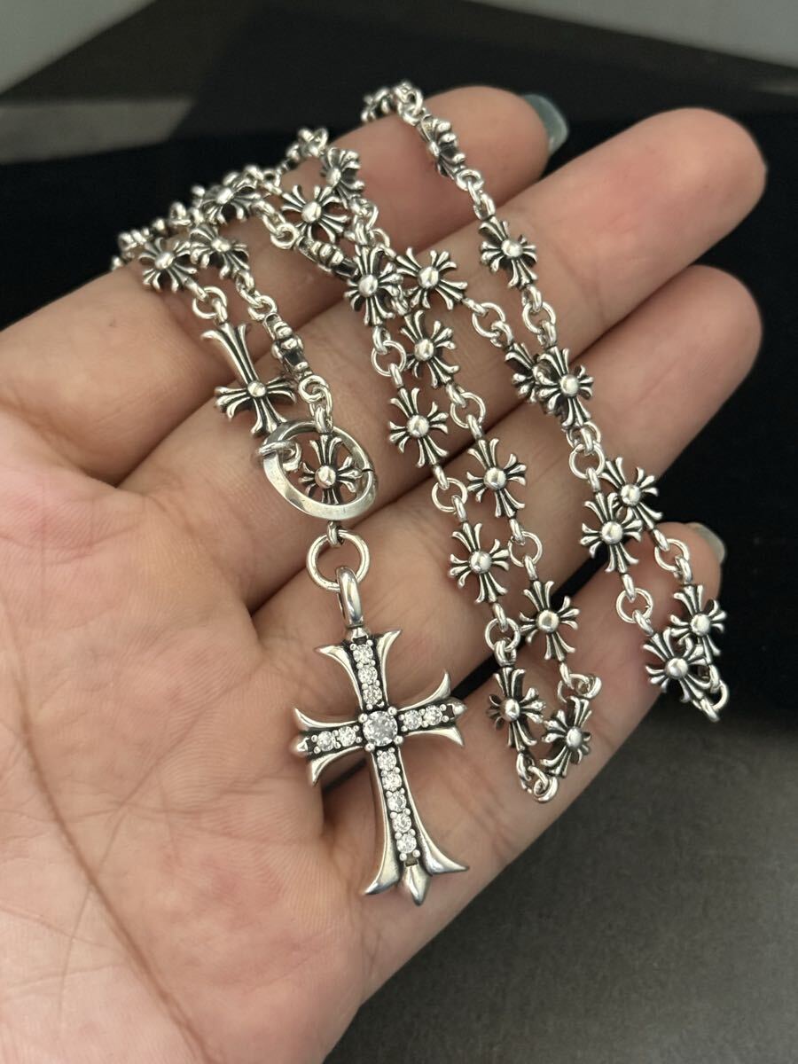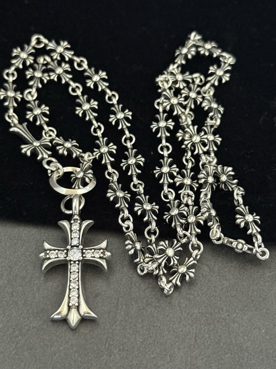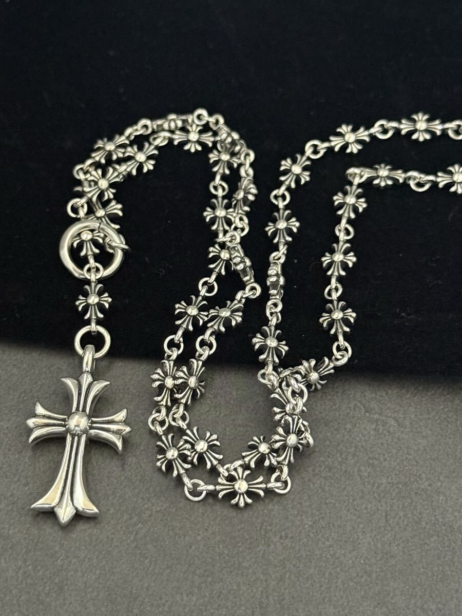 チェーンにもクロス模様が繊細に彫り込まれたオシャレなシルバーネックレスです!