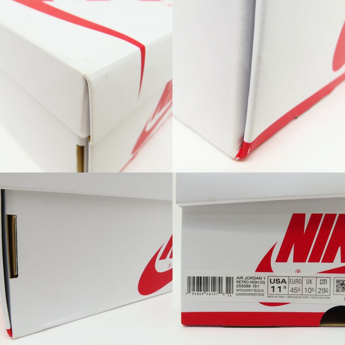153 NIKE ナイキ AIR JORDAN 1 RETRO HIGH OG エア ジョーダン レトロ ハイ 555088-161 US11.5 29.5cm 箱有 ※中古 □付属品:外箱、タグ、プラタグ、替え紐×2 ※画像にあるもので全てです。 □型番:555088-161 □サイズ:29.5cm □状態 ・使用に伴う生活臭付着、履きジワ、スレ、汚れ、多少のソール減り、 内側に毛玉や繊維付着が見受けられます。 ・外箱には保管によるスレ、キズ、汚れ、ヘコミが見受けられます。 ※モニターの環境により実物と画像の色が違うように見える場合があります。 ※クリーニングが必要な場合は購入者様でご対応ください。 ※画像では判別しづらいUSED品特有の薄い汚れや薄いキズ、細かいキズなどある場合があります。 ※商品の状態は当方の主観によるものですので、美品・新同品をお求めの方はご購入をお控えください。 |