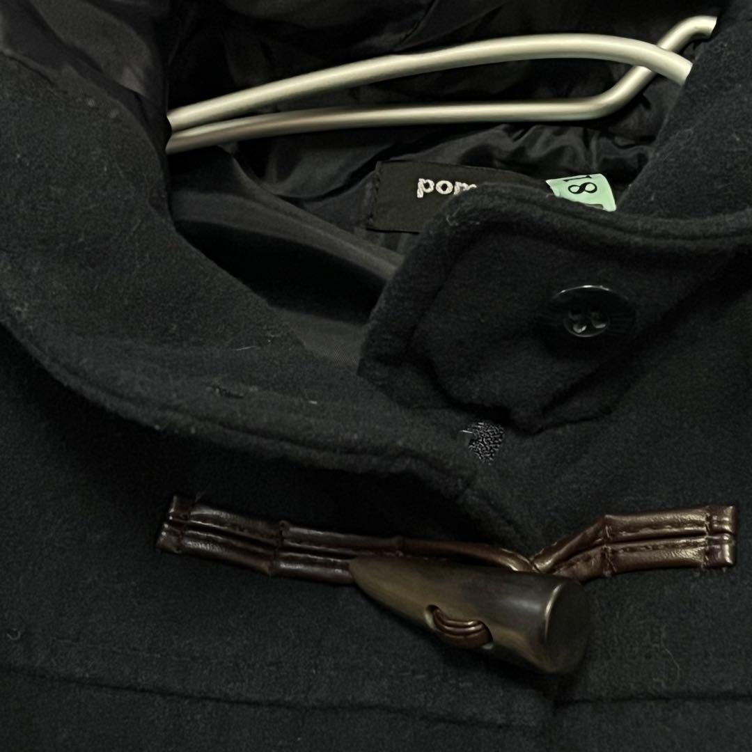 ■説明: ポンポネットの定番のフード付きのネイビーのダッフルコートです。