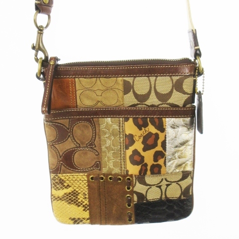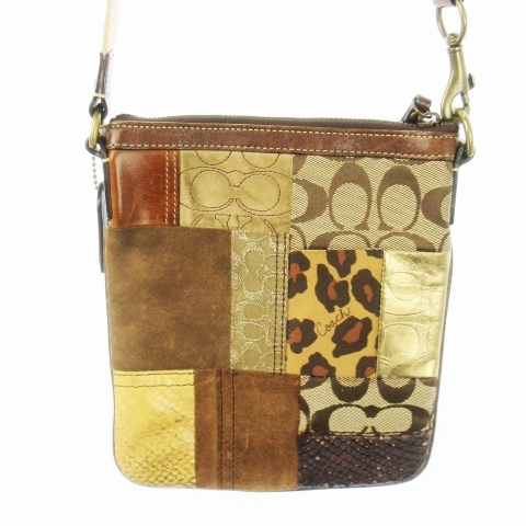 コーチ COACH ショルダーバッグ レザー 革 スエード キャンバス パッチワーク シグネチャー 茶 ブラウン 40915 /CK17 ■GY17
