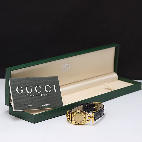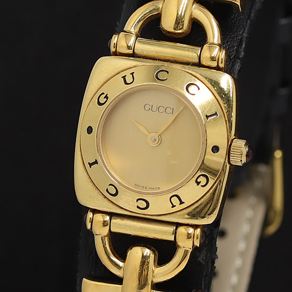 1円 保/箱付 稼働 グッチ 6300L QZ ゴールド文字盤 レディース腕時計 8976000 8APT SMZ