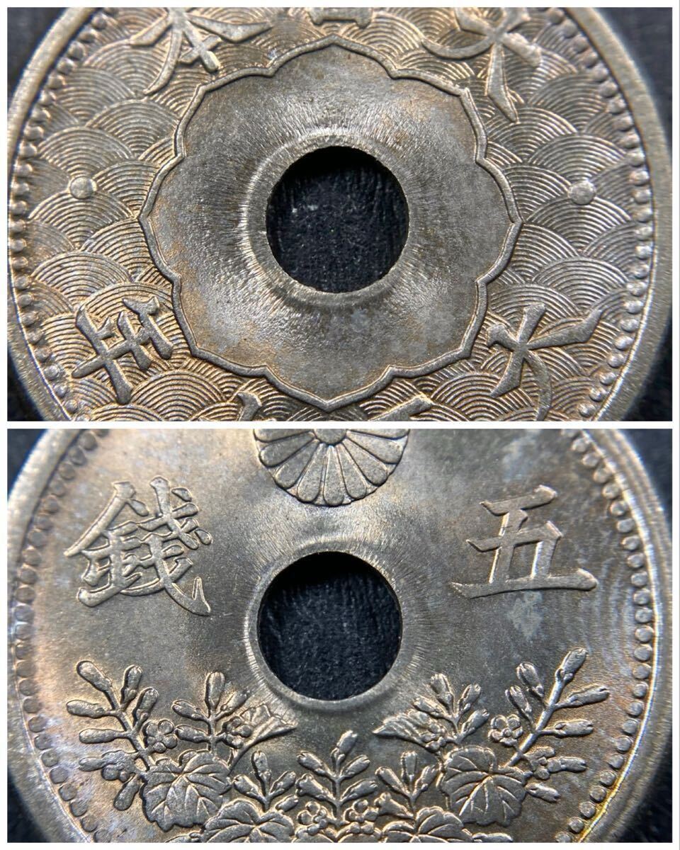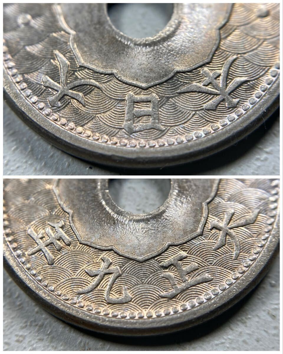 こちらは入手時完全未使用品の小型5銭白銅貨の大正9年で準特年号になります。