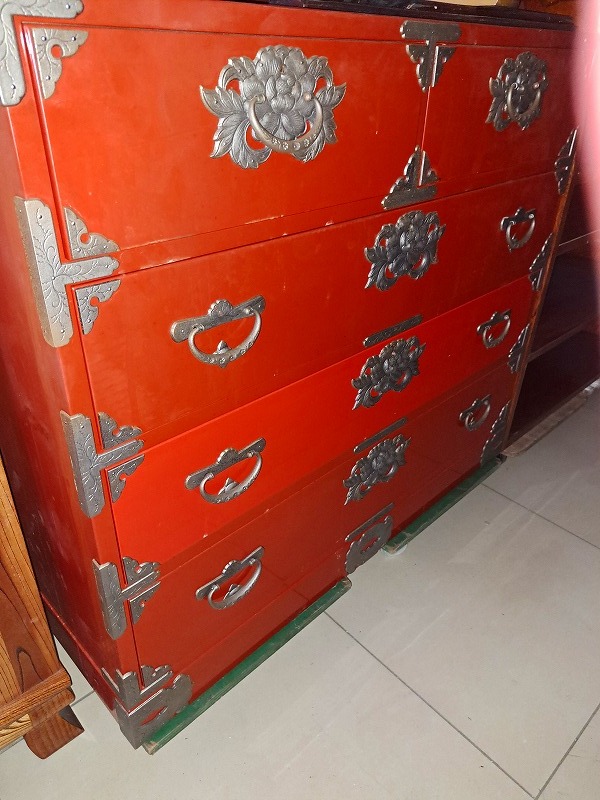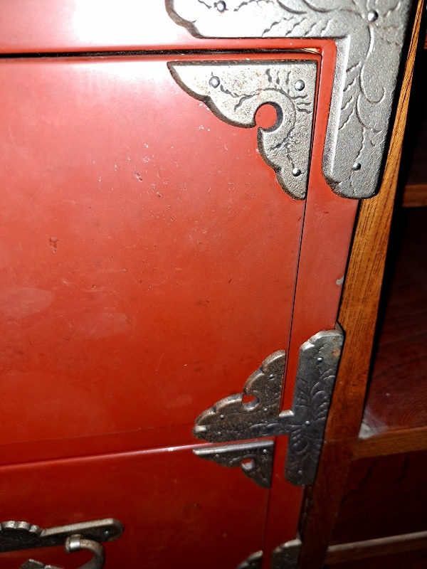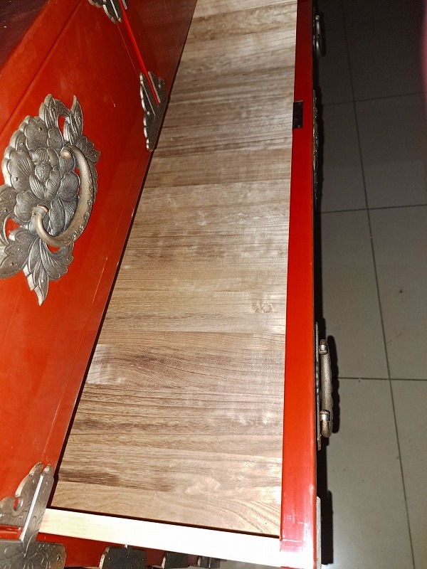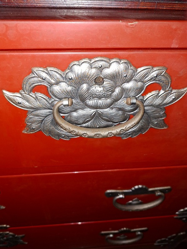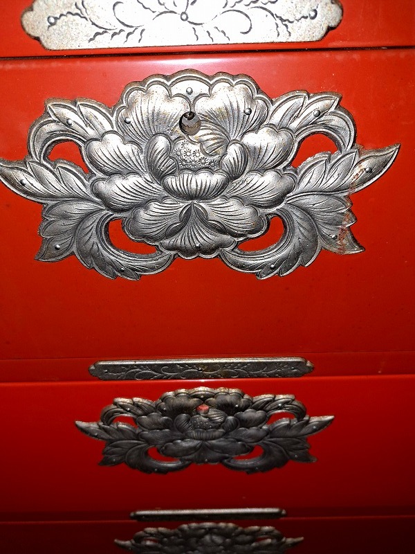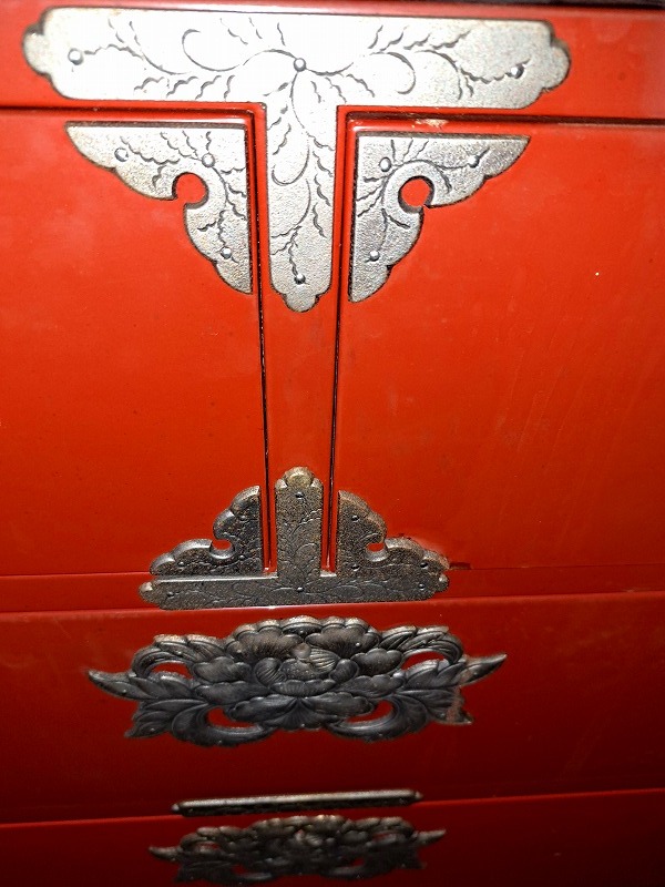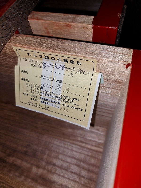 商品名・・岩谷堂タンス 藤原塗り 朱呂色 銀色金具 未使用 サイズ 巾107 奥行45 高さ92cm位