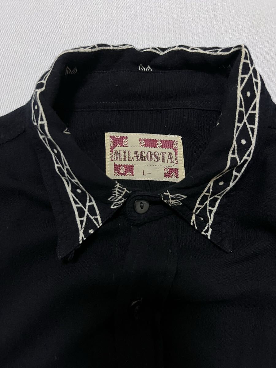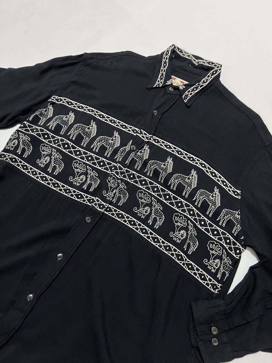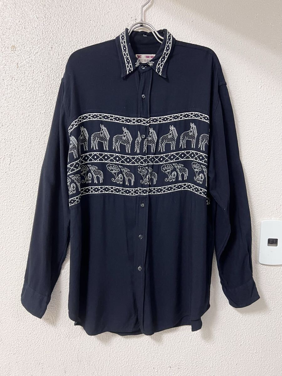 しなやかなレーヨン素材に、エスニック調の動物がデザインされたシャツです。