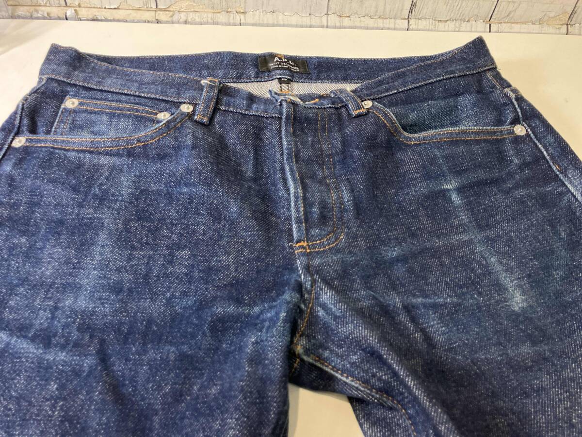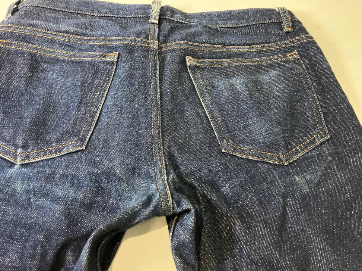 | ウエスト:約76cm ワタリ:約23cm 股上:約23cm 股下:約71cm 裾幅:約17cm 状態:フロント右太もも、バック、両裾に擦れあり |