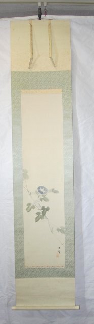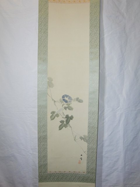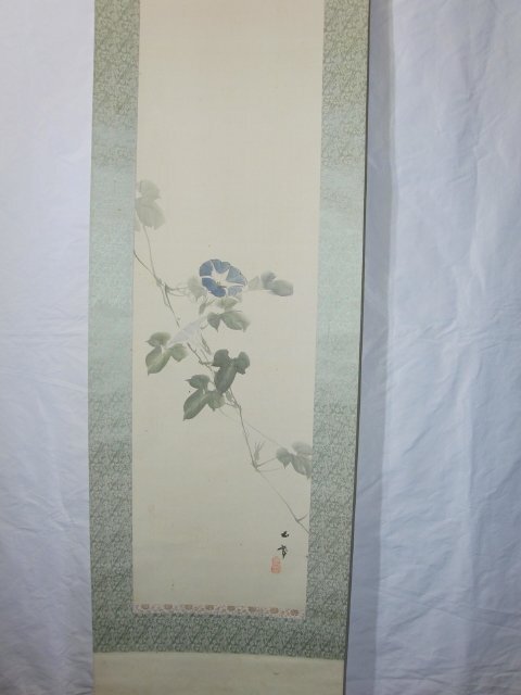 特選品 YH-93 玉芳 朝顔の図 掛軸 書画 美術