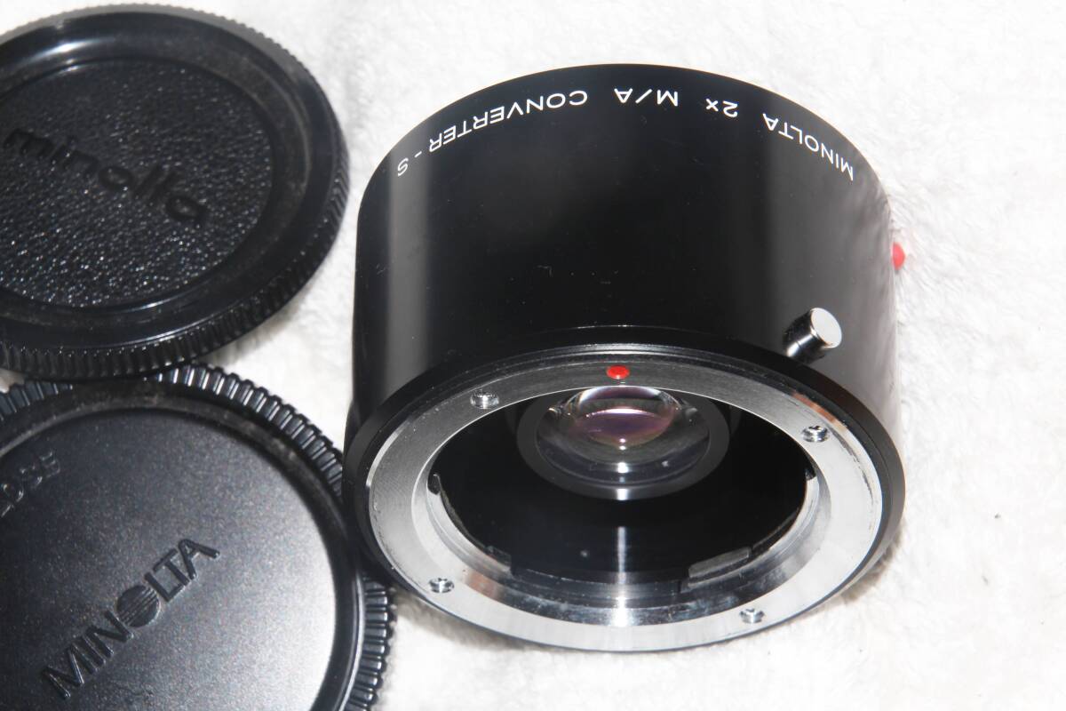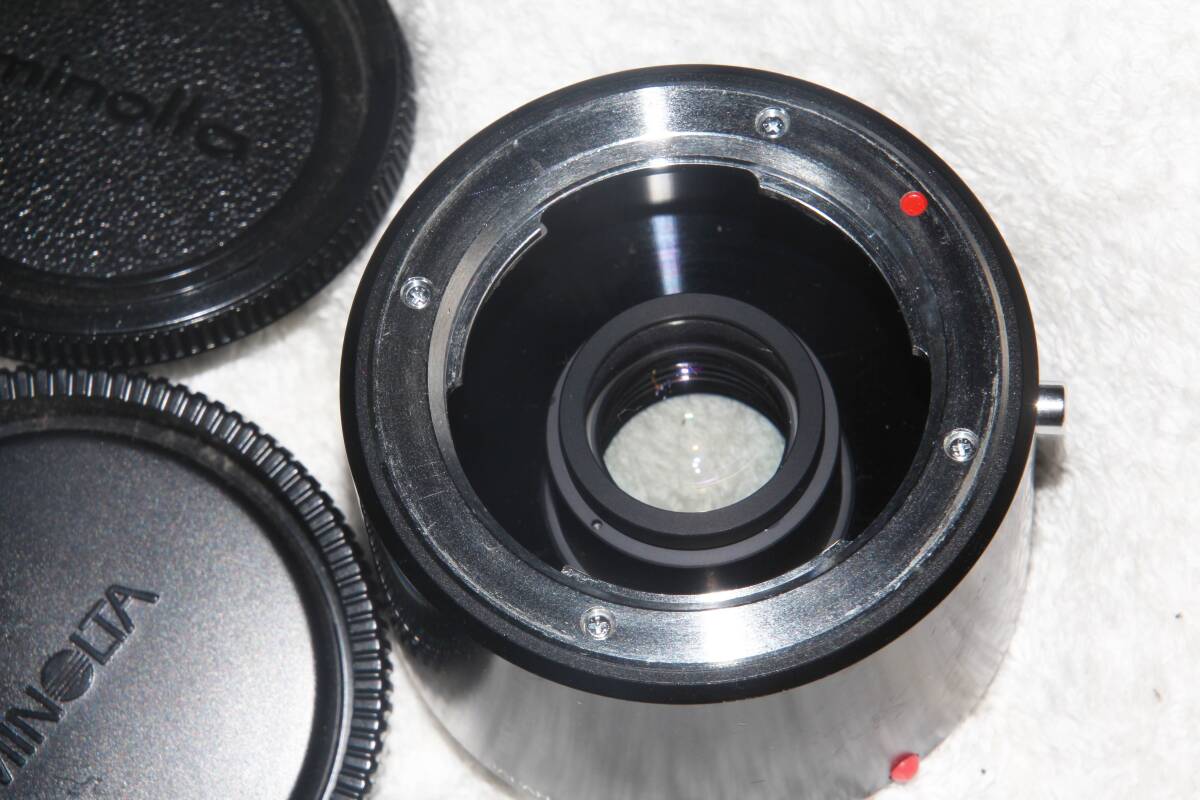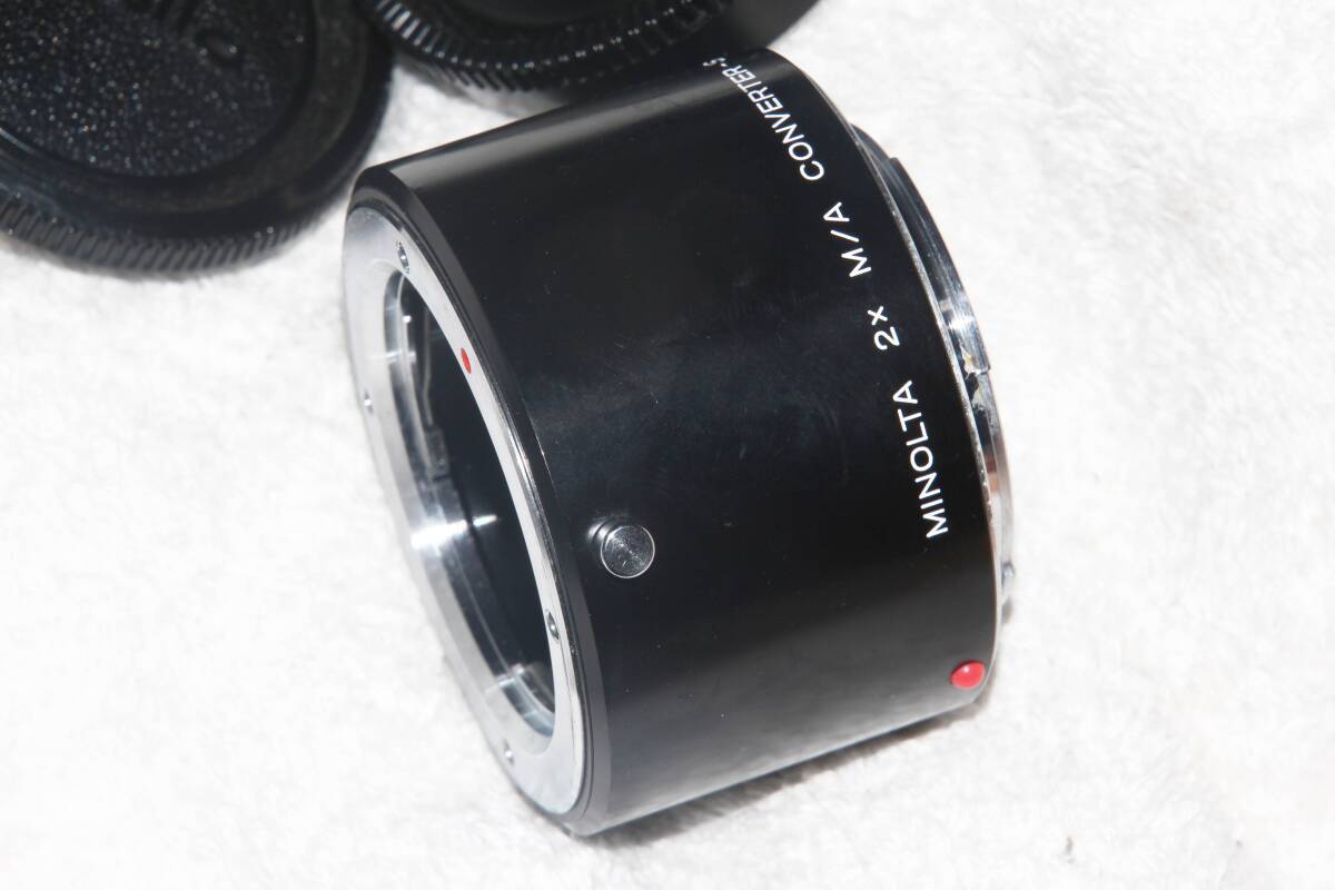 商品説明 | ミノルタ MINOLTA 2X M/A CONVERTER-S です。珍品レンズです。 ミノルタ純正の2倍テレコンバーターです。MDマウントのレンズをαマウントボディに装着可能です。 電子接点はありません。MF・実絞りとなります。 レンズはカビ、キズ、クモリなどは感じられず良好です。 外観も良好です。 レンズ本体のほか、純正の前後キャップが付属します。 発送はゆうパック(元払い60サイズ持込)、もしくはレターパックプラスです。 | |