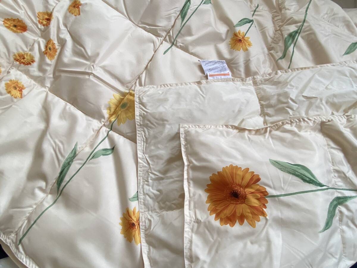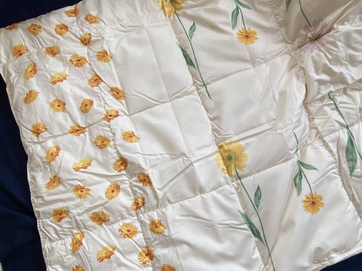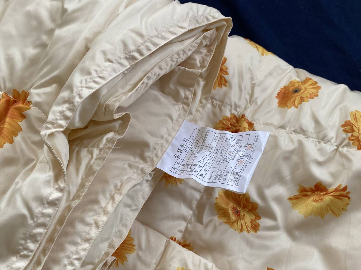 新品【三河繊維】 洗えるダウンケット ご家庭で洗えます 紫外線にて高温殺菌を施し 清潔で安心な製品です とっても可愛いお花柄 年間通してお使いいただけるお品 箱なし発送のみとさせていただきます ご了承ください ★サイズ 150×210cm ★品質 表地・裏地:ポリエステル100% 中わた:ダックダウン50% スモールフェザー50% ★中わた重量 0.3kg |