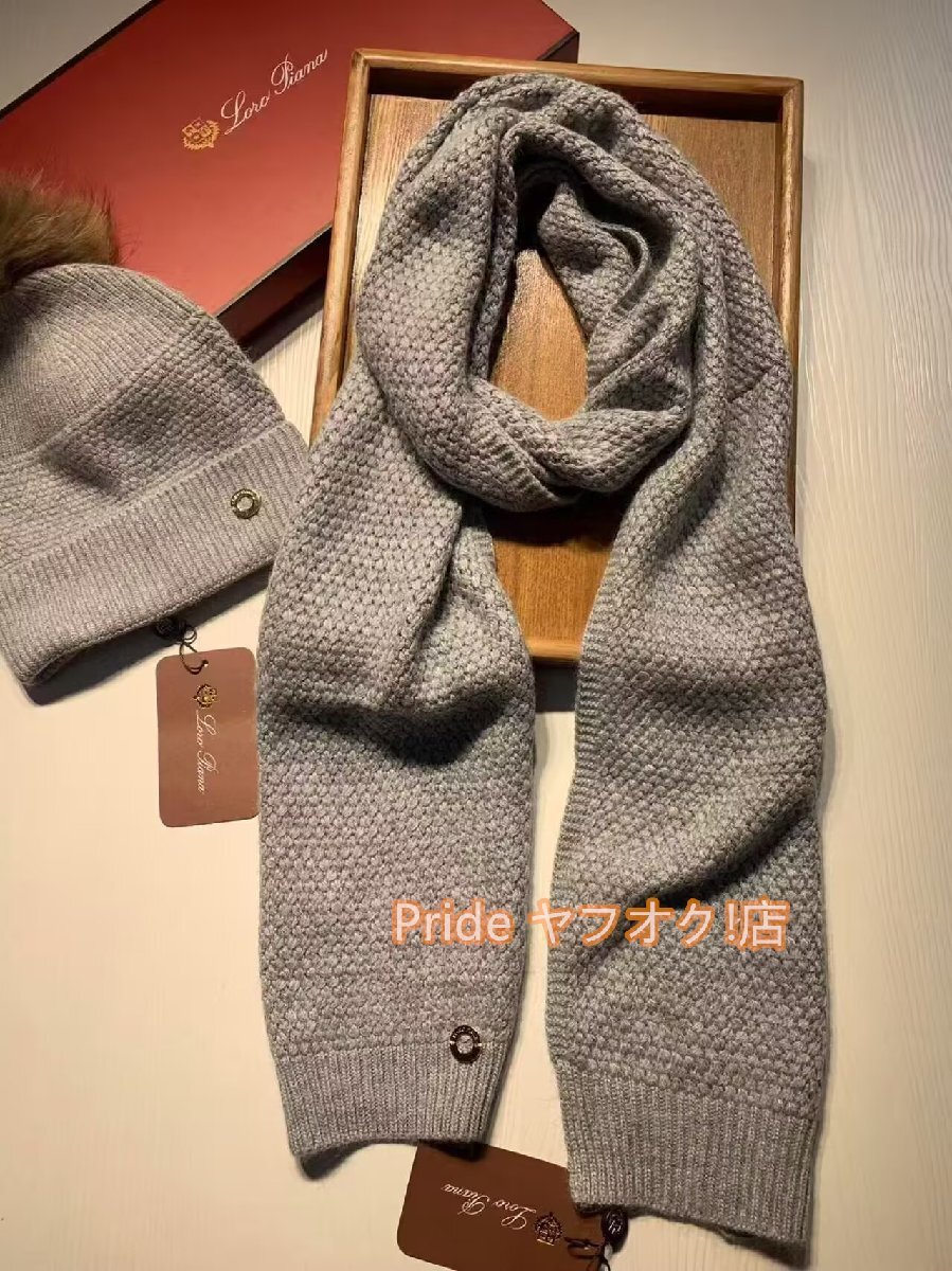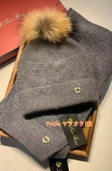 ロロピアーナ Loro Piana マフラー ストール ニット帽 ハット 2点 セットグレー