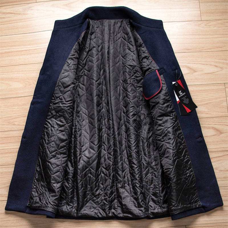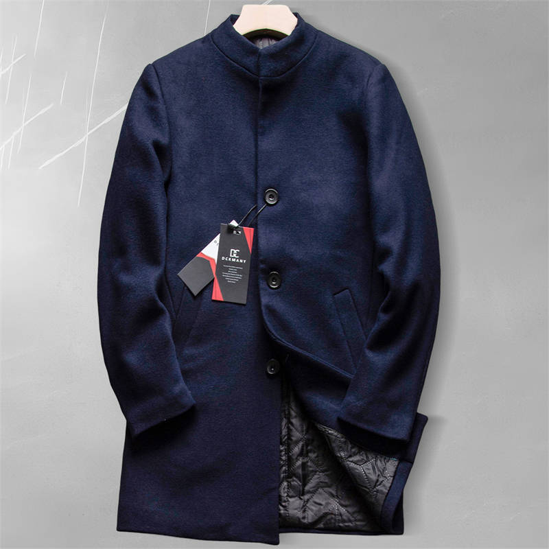 A421-3XL程度 新品DCKMANY ウール混 立ち襟 ミドル コート 中綿 ジャケット メンズ シングル 防寒 厚手 ビジネス アウター 秋冬/ネイビー