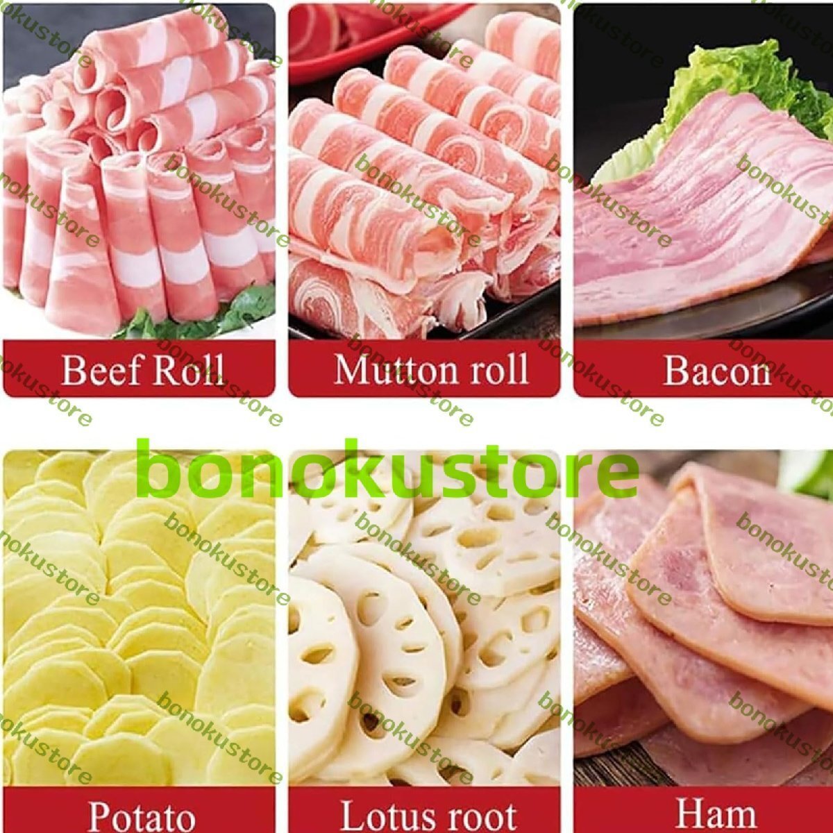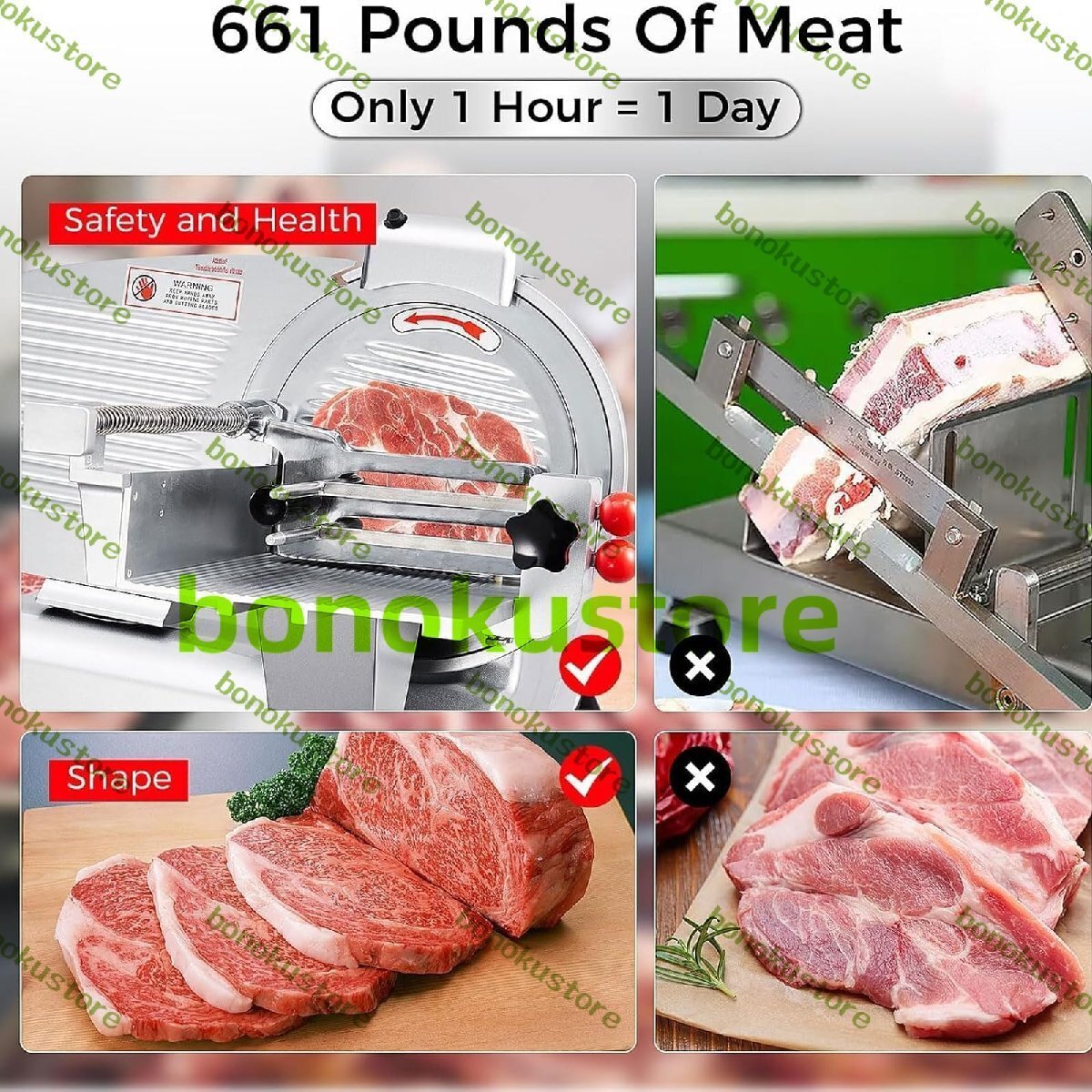 効率的: 当社の電動肉スライサーは、ブレード速度 1200 RPM の 550W モーターを搭載しており、1 分間に 42 枚のスライスを生産できます。この効率的な生産システムにより、この食品スライサーはさまざまな大量ニーズを満たすことができます。