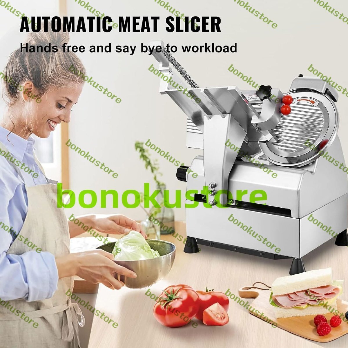 550W自動冷凍肉スライサー、12インチステンレススチール肉カッター、0?7mmの調整可能な厚さ、180mmの肉切断プロセス、商業、レストラン、ホテル用