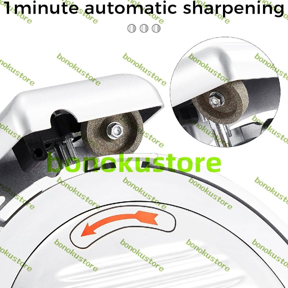 ナイフ研ぎ: この肉スライサーには自動ナイフ研ぎ器が内蔵されており、刃のメンテナンスと研ぎのプロセスが簡単になります。非常に効率的な砥石は、刃の鋭い刃先を数秒で復元し、毎回最適な切断性能を保証します。
