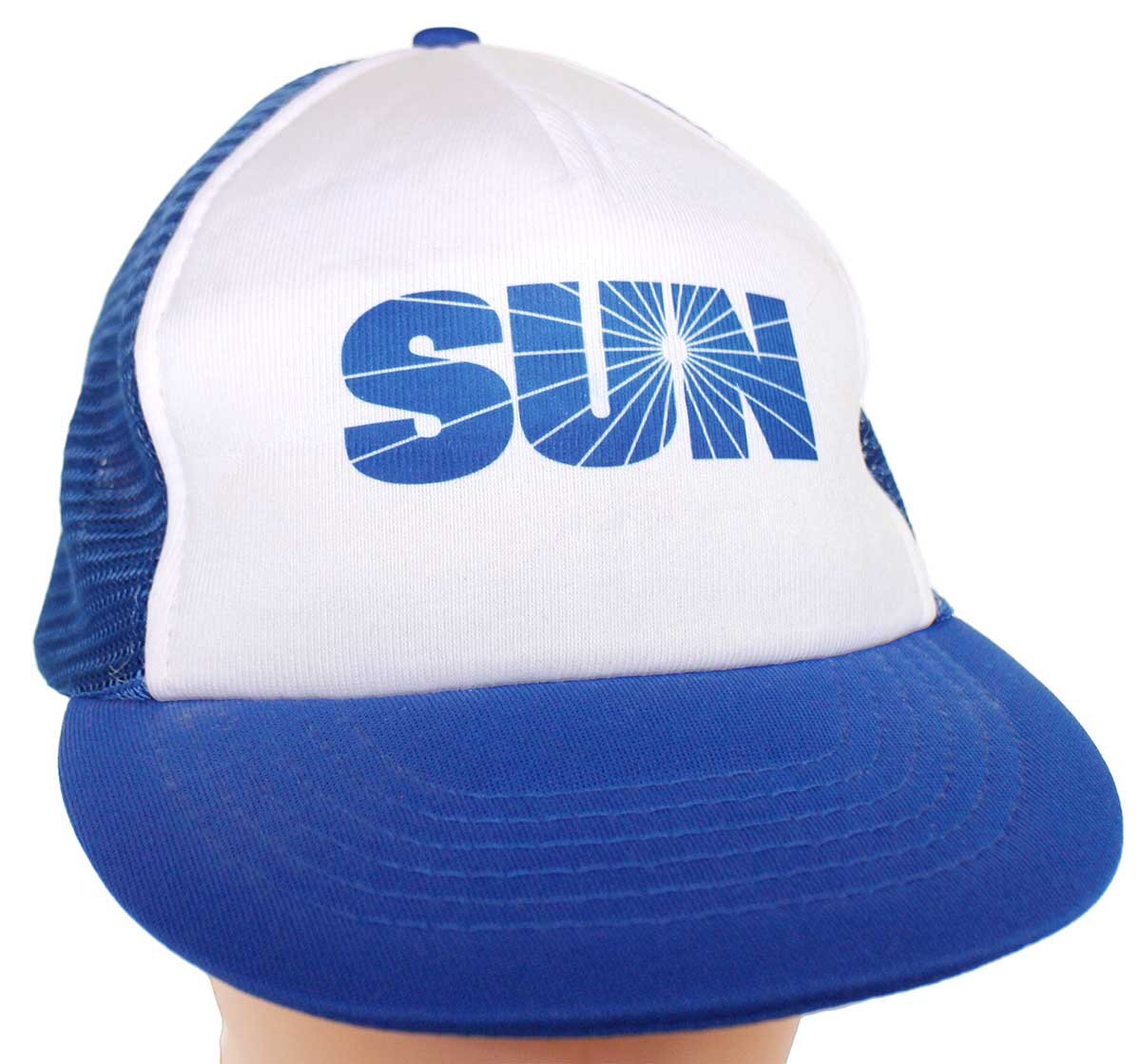 ★90s SUN ツートン 切り替え メッシュキャップ 青×白★オールド ビンテージ トラッカー 太陽