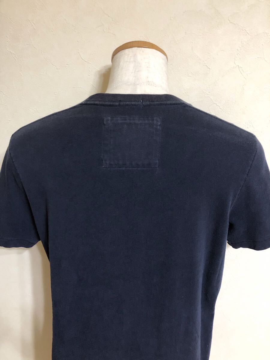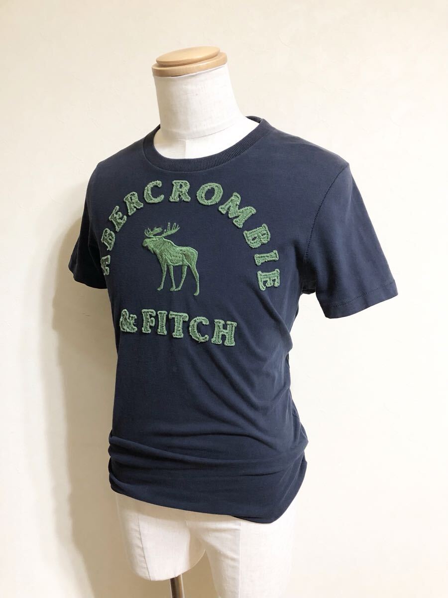 【品名】Abercrombie & Fitch アバクロンビー&フィッチ ビッグロゴ クルーネック Tシャツ 刺繍 トップス サイズL 半袖 ネイビー