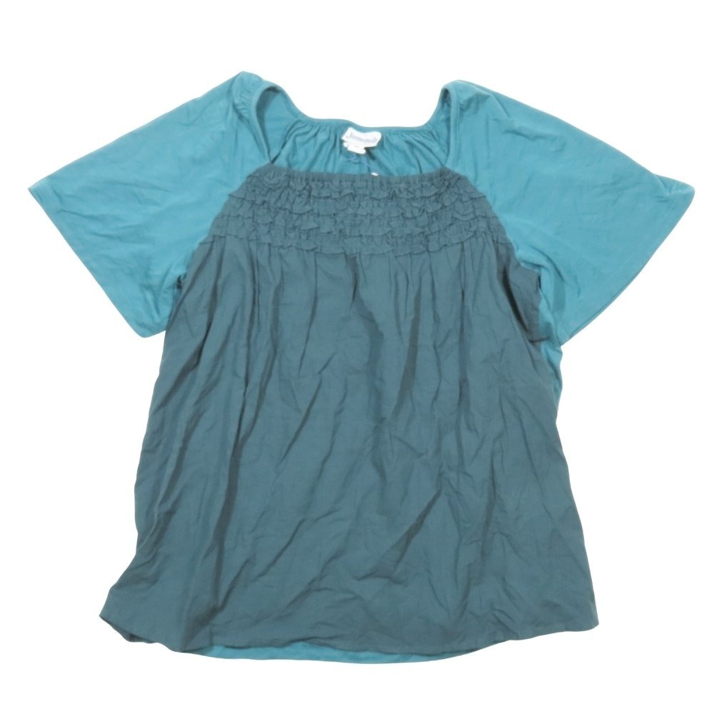 商品名:JOCOMOMOLA ホコモモラ ジビラ フリル 切替 Tシャツ カットソー シャツ プルオーバー 半袖 40 緑系
