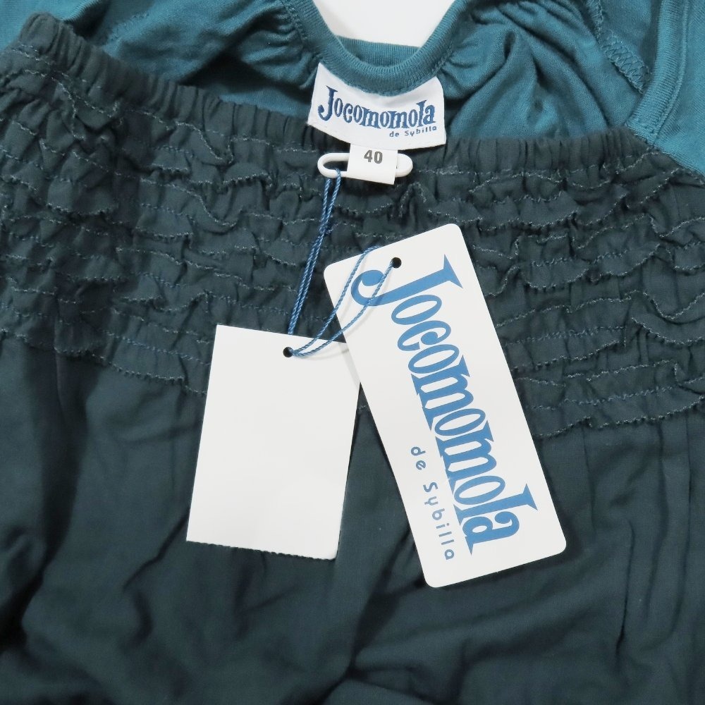 未使用 JOCOMOMOLA ホコモモラ ジビラ フリル 切替 Tシャツ カットソー シャツ プルオーバー 半袖 40 緑系