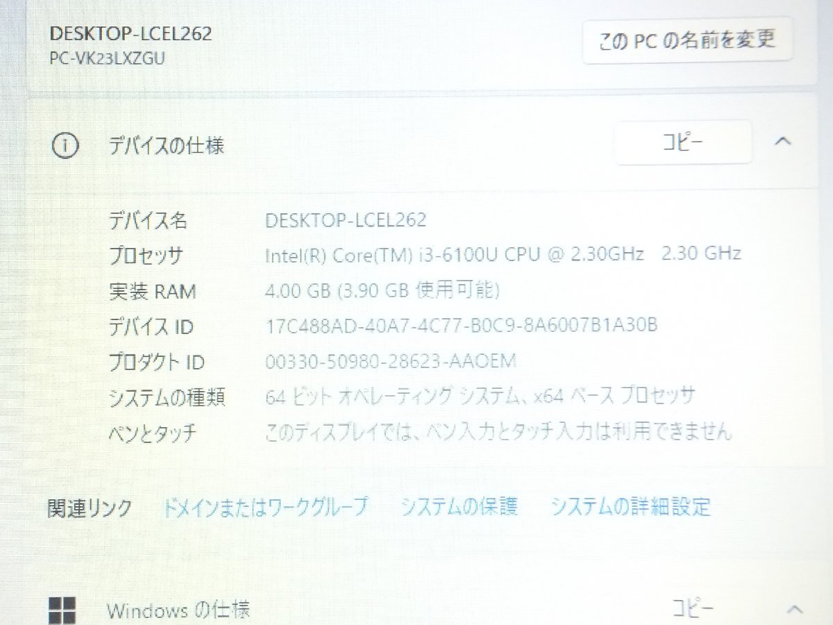 | NEC 現状品■VersaPro VK23LX-U(PC-VK23LXZGU)■Core i3-6100U(第6世代)■4GB(メモリ)■500GB(SATA)■15.6型■Office■Windows11■③ | |