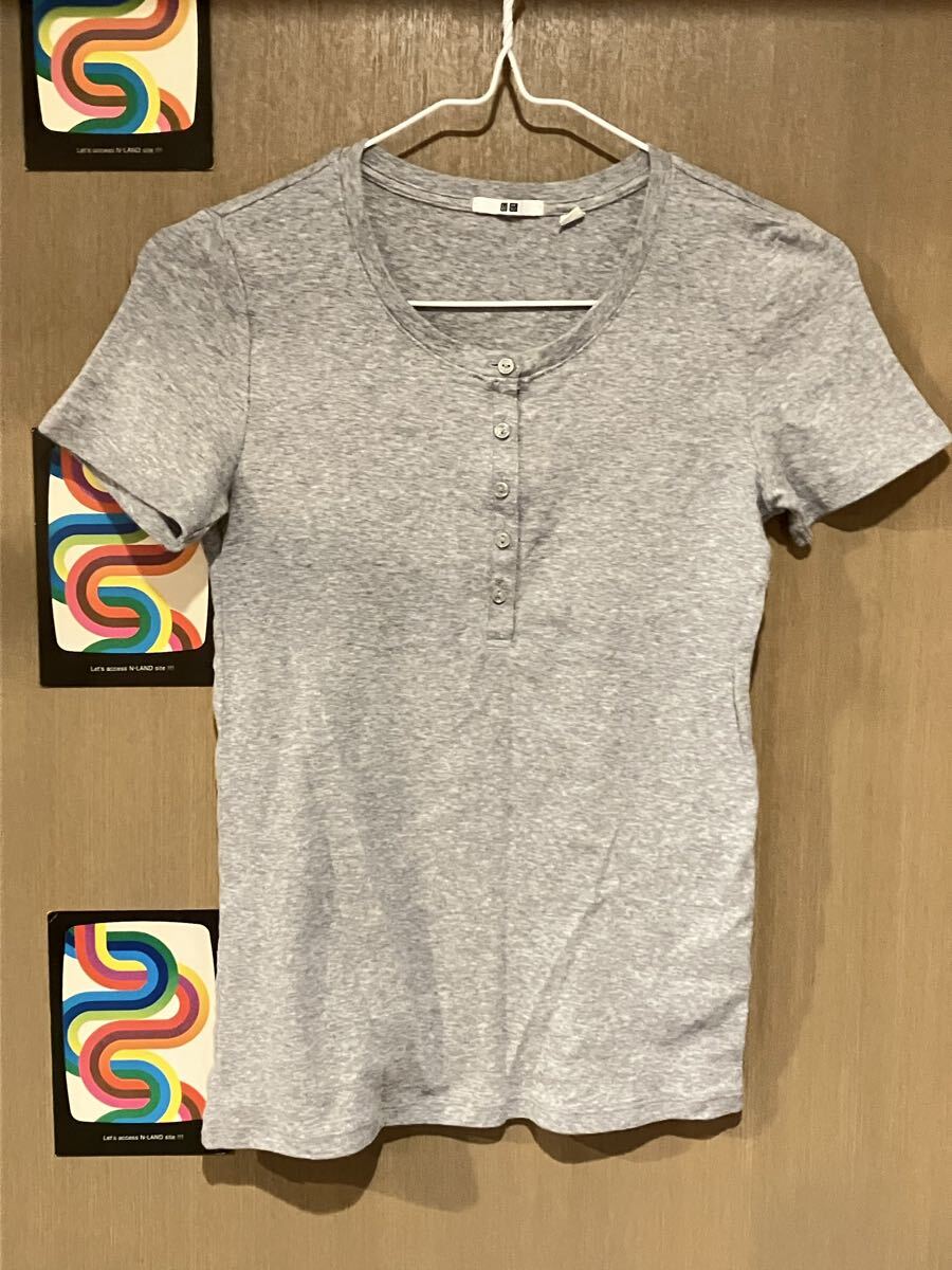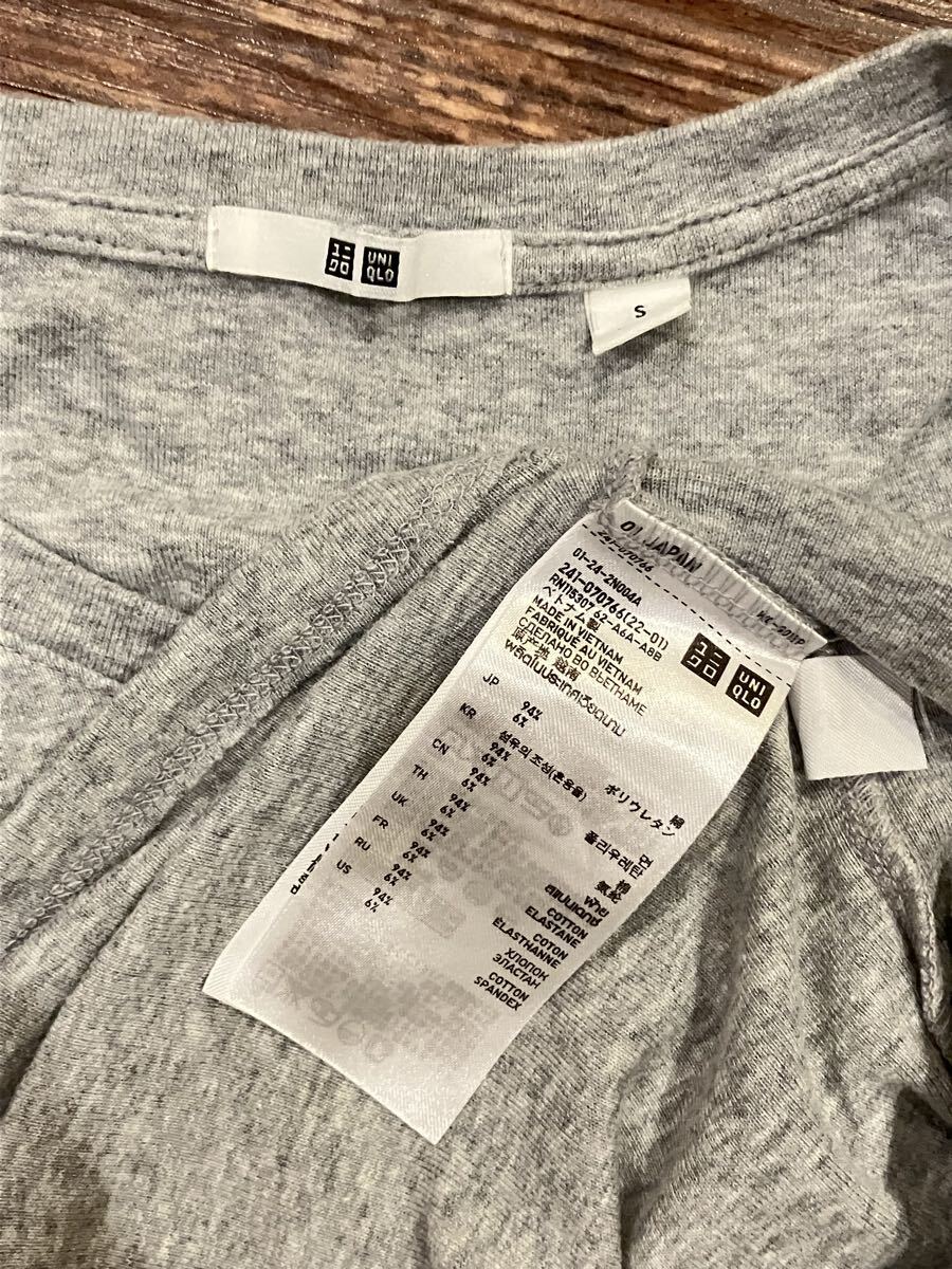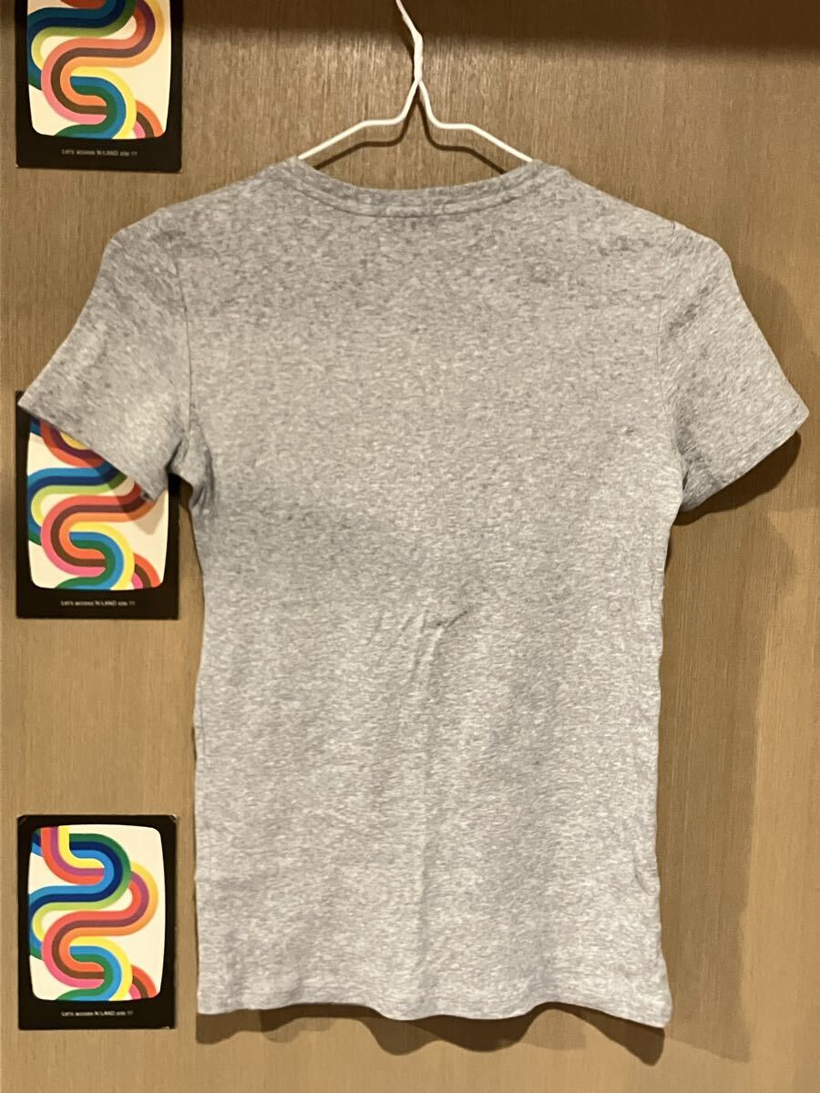毛羽立ちがございますがキレイです。Sサイズ、お色はグレーです。