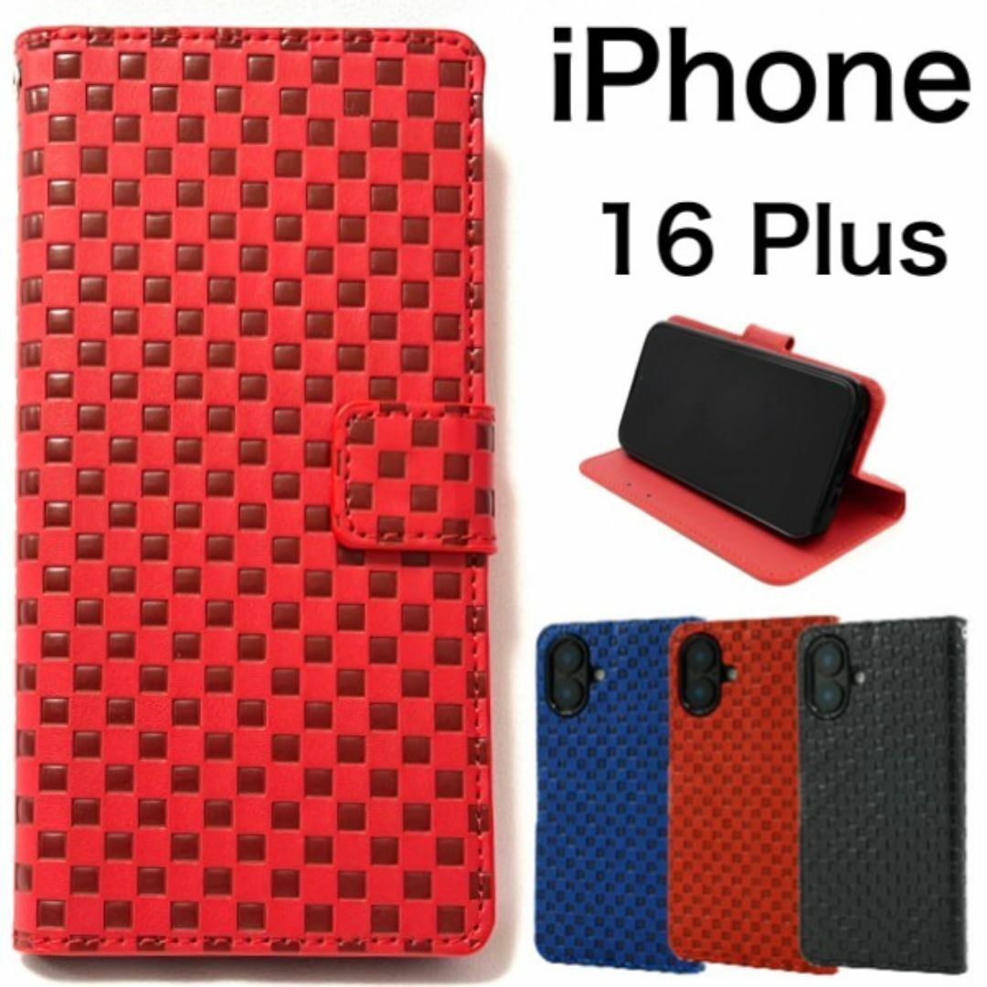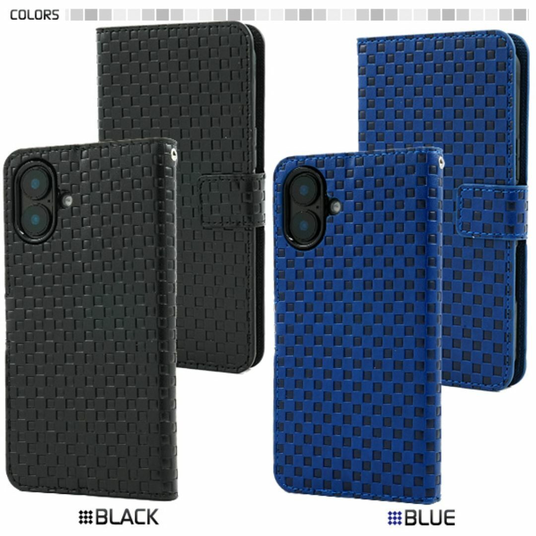 市松模様デザイン手帳型ケース