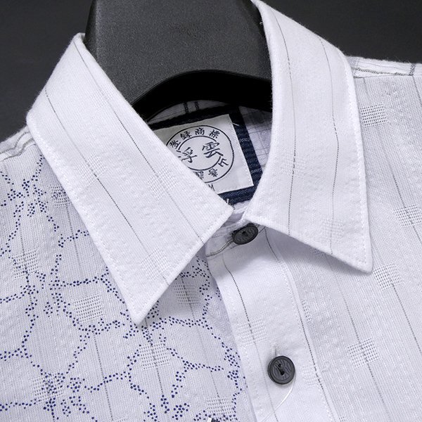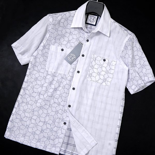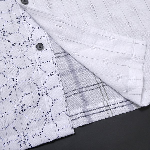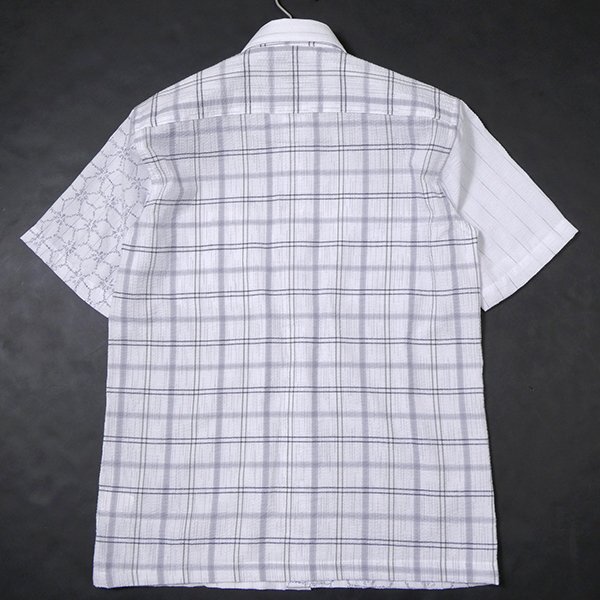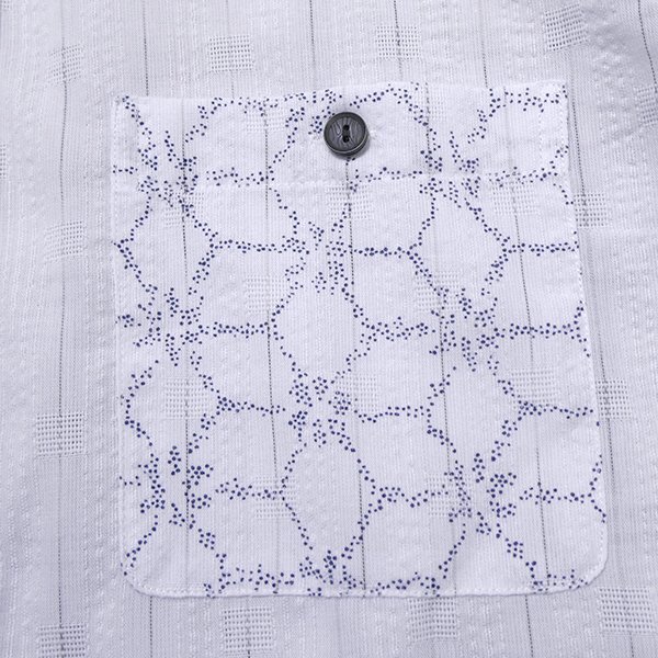 和テイストな花柄とストライプ・チェックを組み合わせたクレイジーパターンの半袖シャツ。 しじら織りとシアサッカーを組み合わせた素材は、凹凸感があって肌への接地面積が少ないためベタつかず、吸汗速乾性に優れ、風通しがよくシワになりにくいため夏に最適な素材です。 様々な柄が組み合わさったデザインですが、カラーをモノトーンにすることで落ち着いた印象に仕上がっています。 |