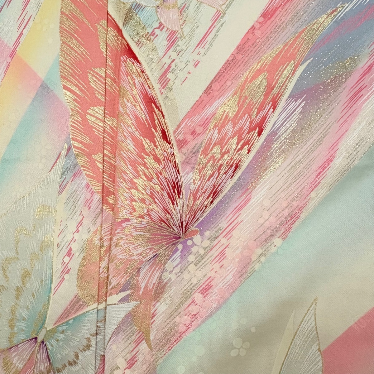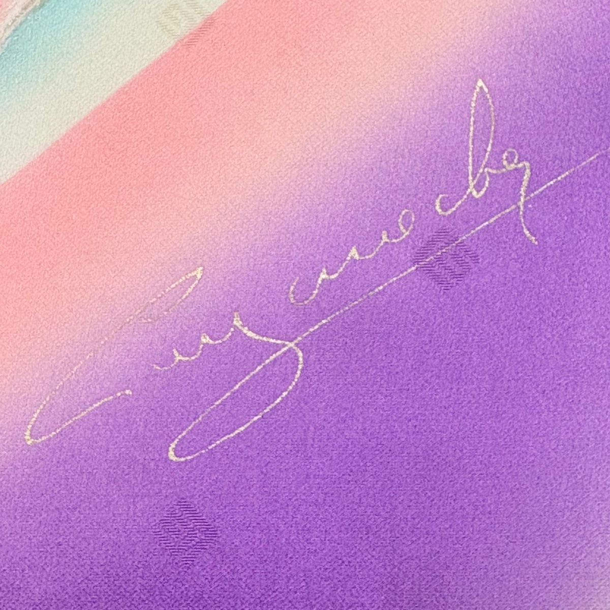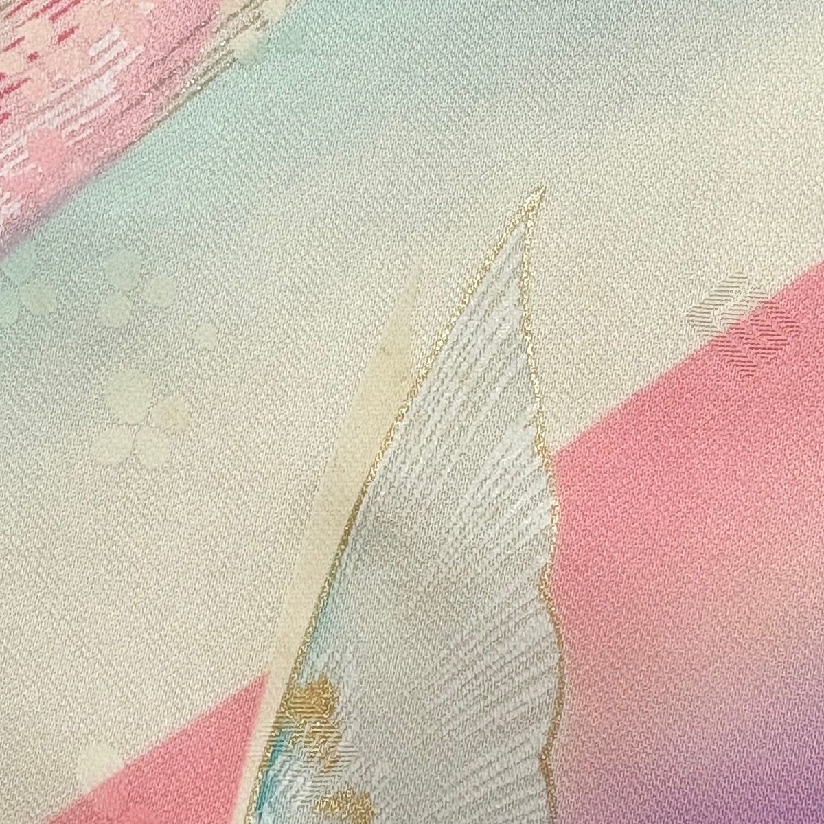 | 訪問着 秀品 落款 背抜き 蝶 幾何学 金銀彩 青灰色 袷 身丈162.5 裄丈65.5 M 正絹 【中古】 |