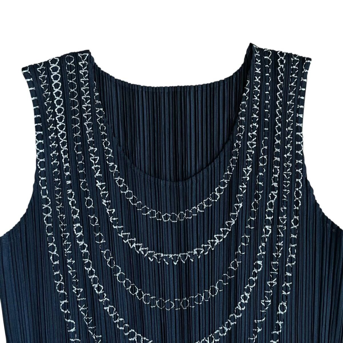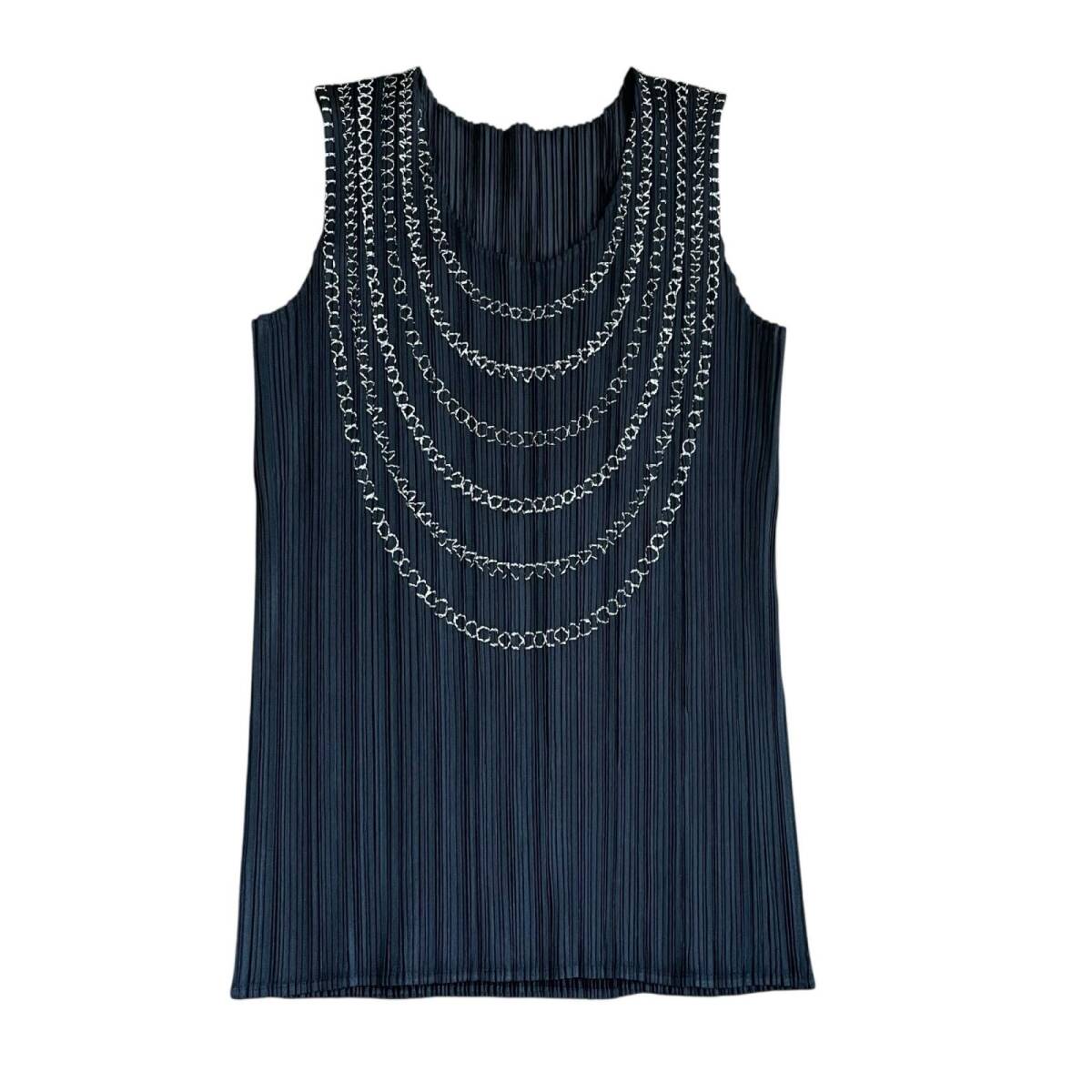 ISSEY MIYAKE イッセイミヤケ プリーツプリーズ ノースリーブ トップス 黒 チェーンデザイン タンクトップ サイズ 4 |