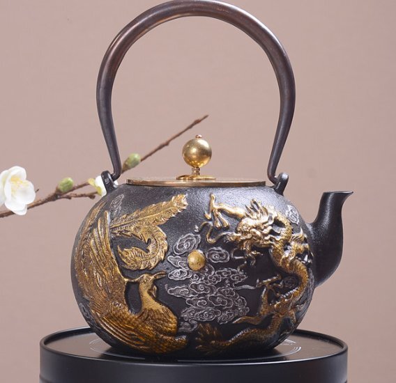 龍鳳戯珠ティーポットです鋳鉄製鉄瓶 南部鉄瓶 手作り コーティングなし 老鉄瓶 やかんを沸かす 提梁鉄瓶 お茶の道具