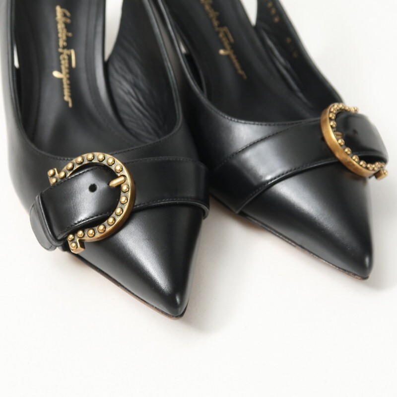 | MH9429*イタリア製 サルヴァトーレフェラガモ Size 4.5D ガンチーニ レザー スリングバックミュール パンプス ポインテッドトゥ 靴 黒 | |||