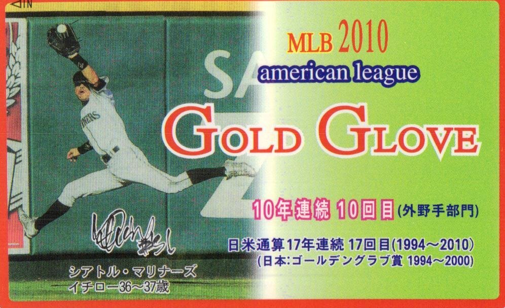★イチロー シアトル・マリナーズ 2010年ゴールドグラブ★テレカ50度数未使用bu_335