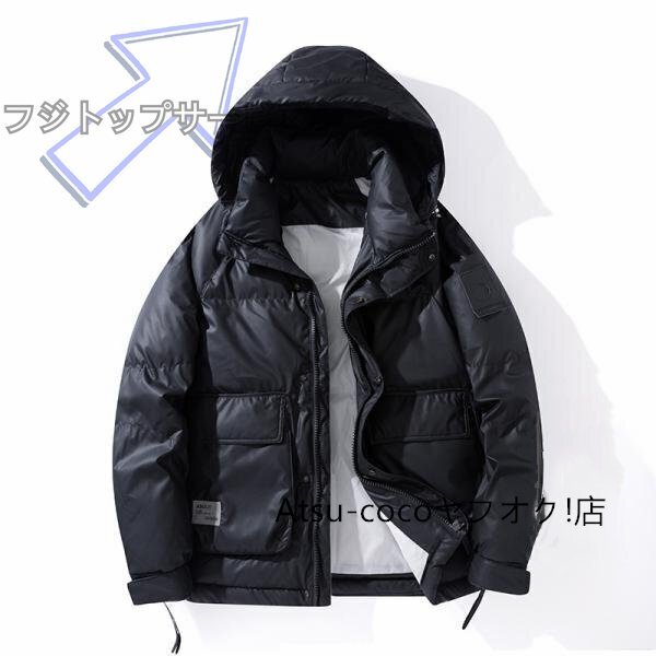 ダウンジャケット メンズ 大きいサイズ 軽量 暖かい フード 防寒着 メンズアウター おしゃれ 冬 ジャンパーL-5XL ブラック