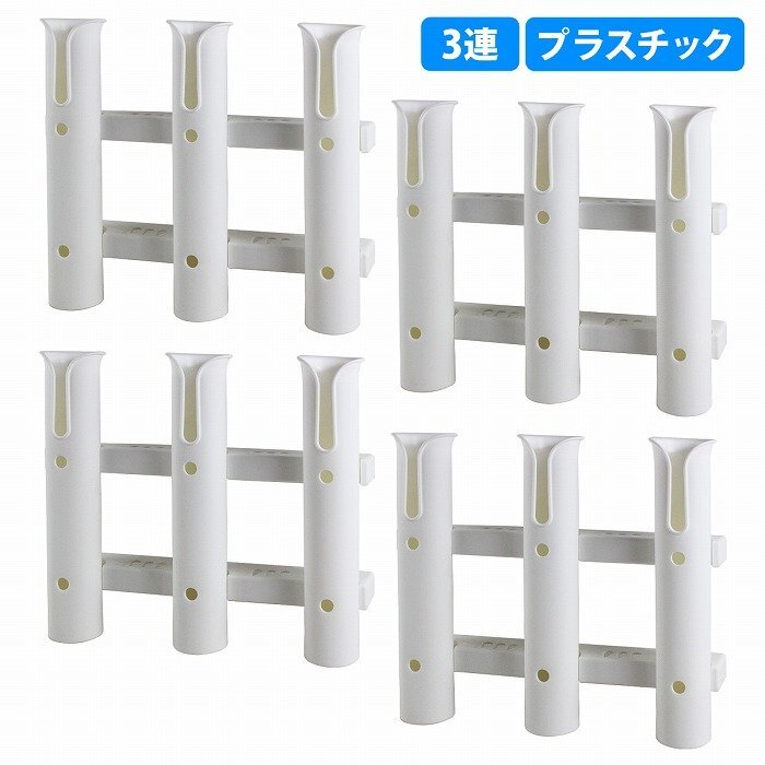 [3連 4個セット] ロッド ホルダー 竿 立て 置き 入れ 釣り フィッシング スタンド ネジ付 固定 船 漁船 ボート 白 ホワイト