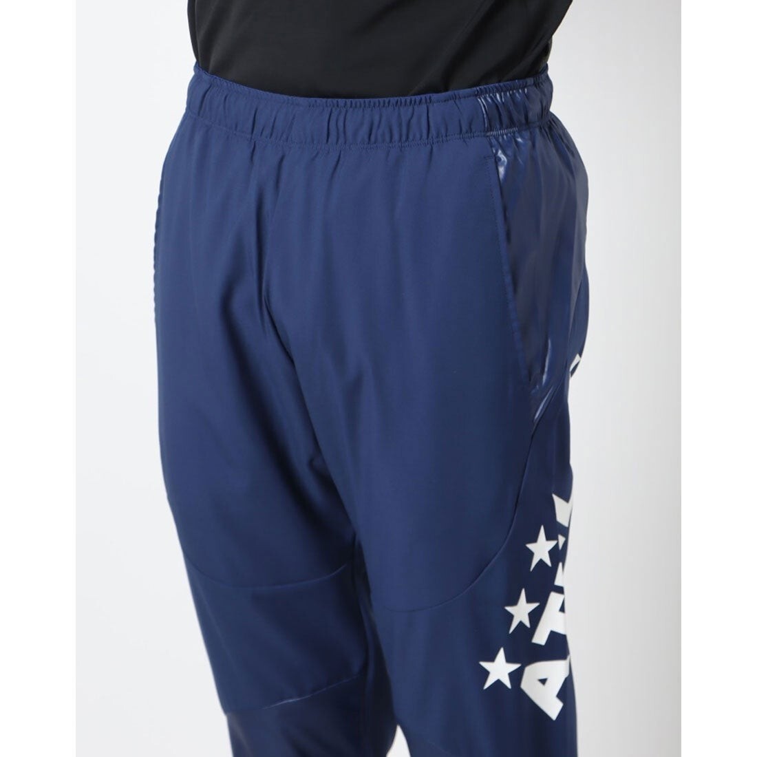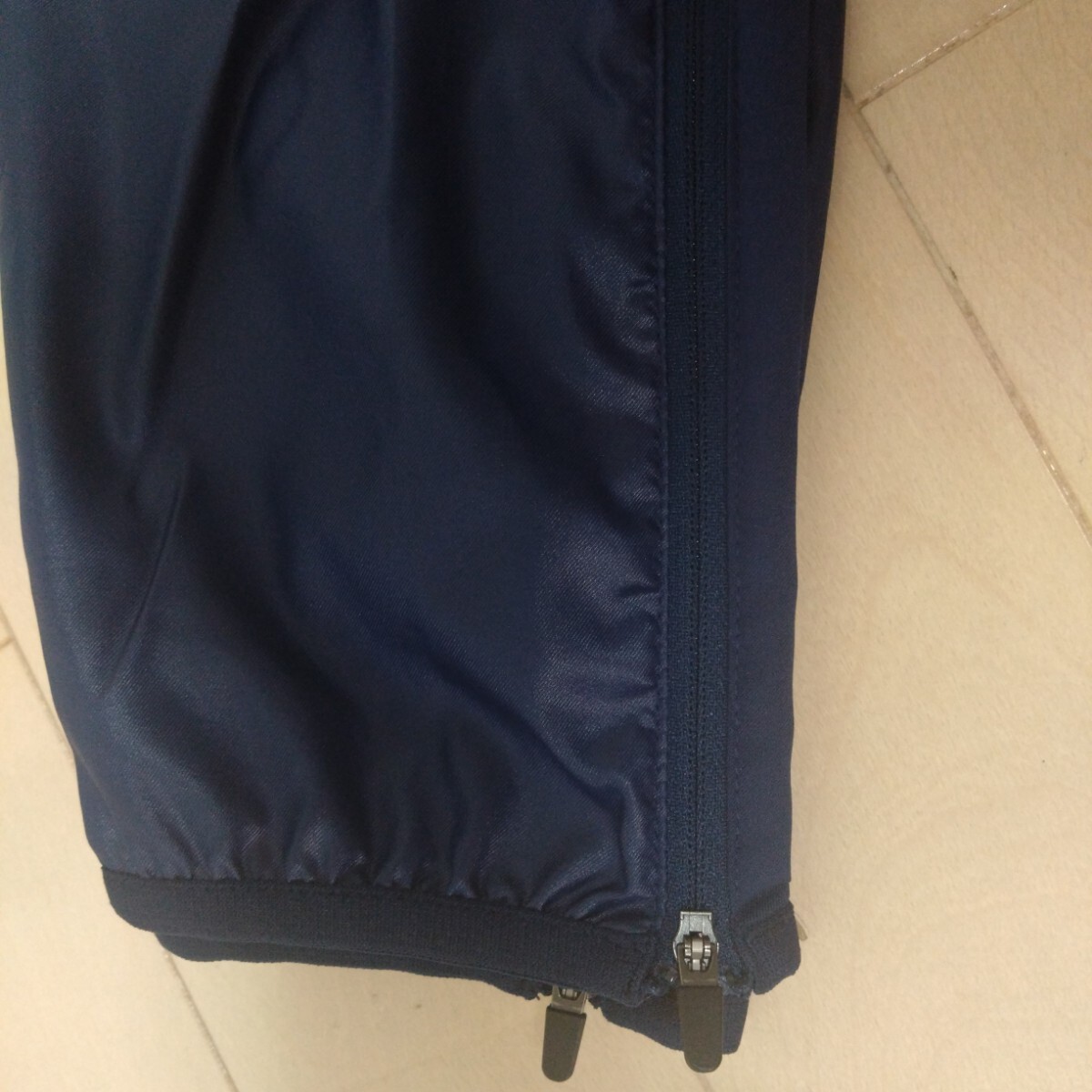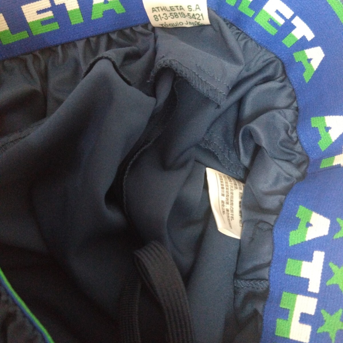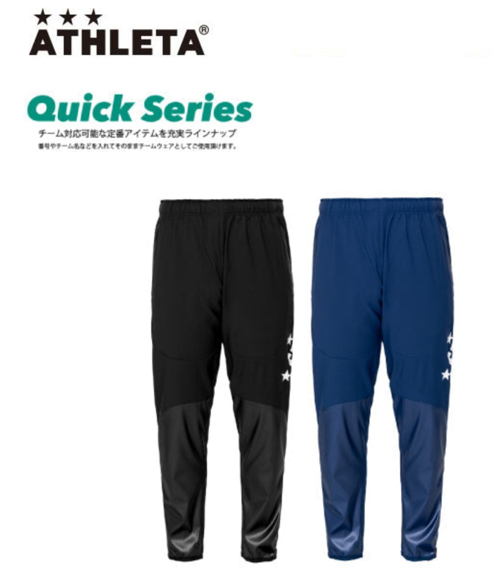ウエストゴムとポケット付きのネイビーのピステパンツ、ATHLETAのQuick Series。