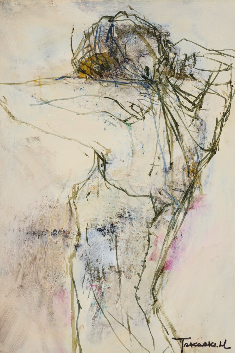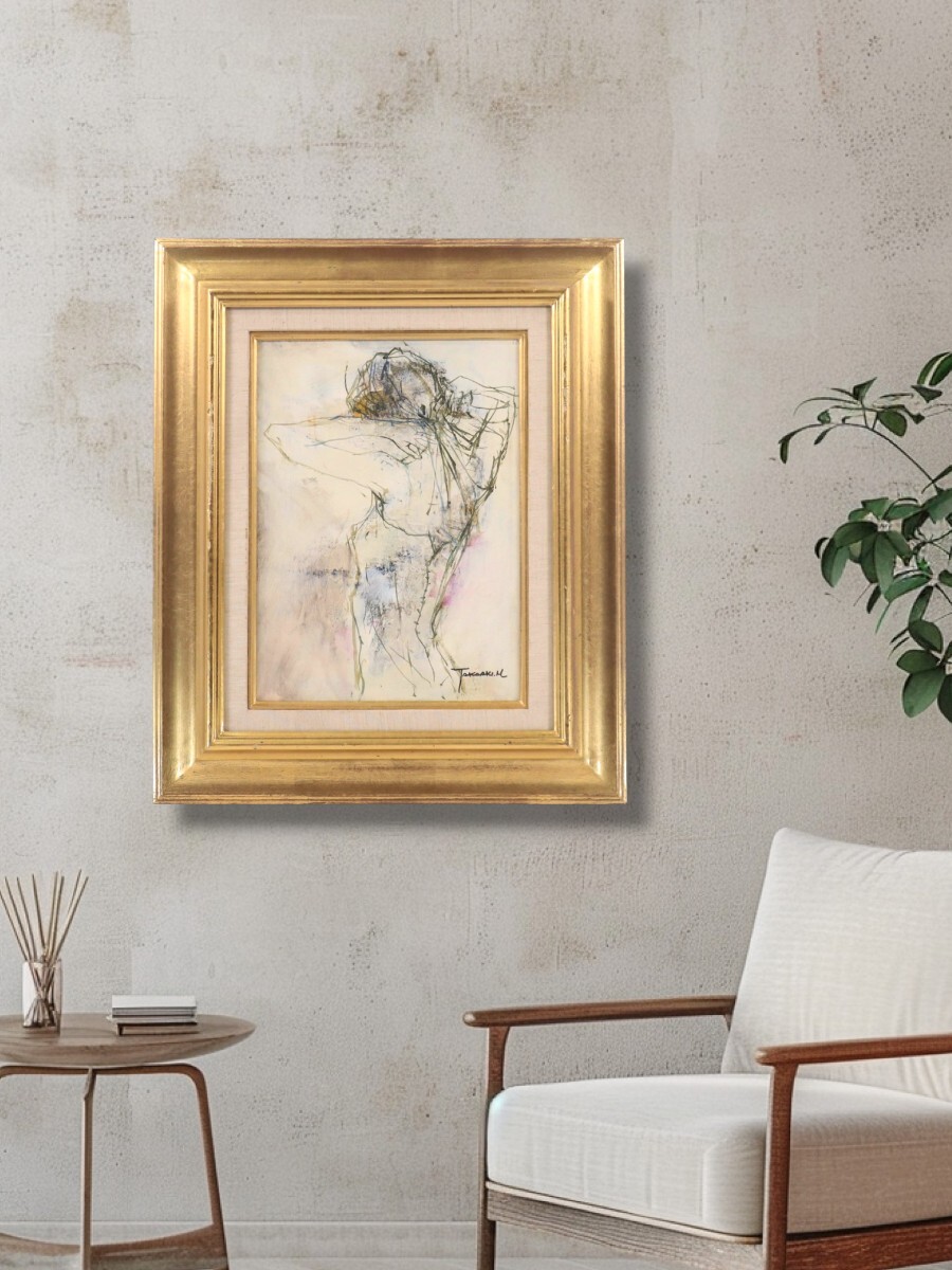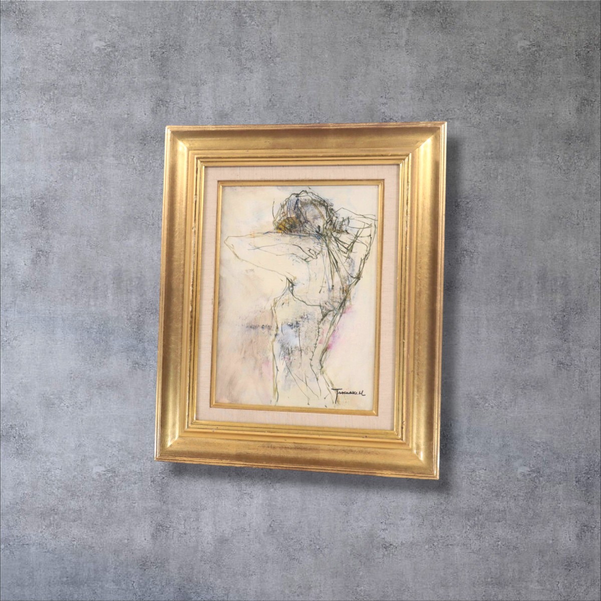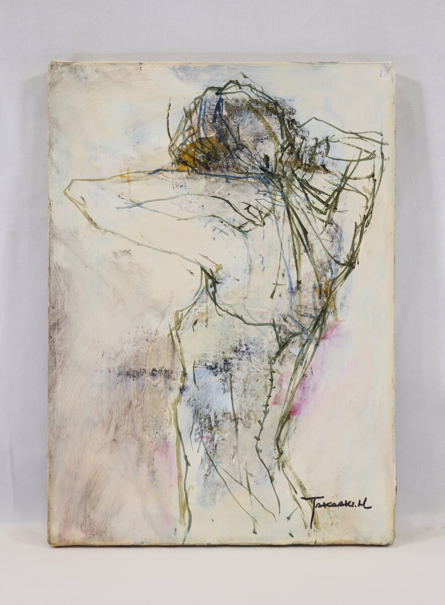 真作 八方隆明 油彩「女」画寸24×33cm F4 二元会運営委員、常任理事 繊細な線描と淡い色彩 女性の柔らかな身体の動きや儚さを感じる 11268