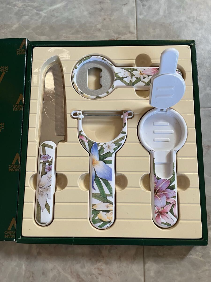 新品未使用箱入りの、花柄がとても可愛いくて素敵なキッチン4点セットです。