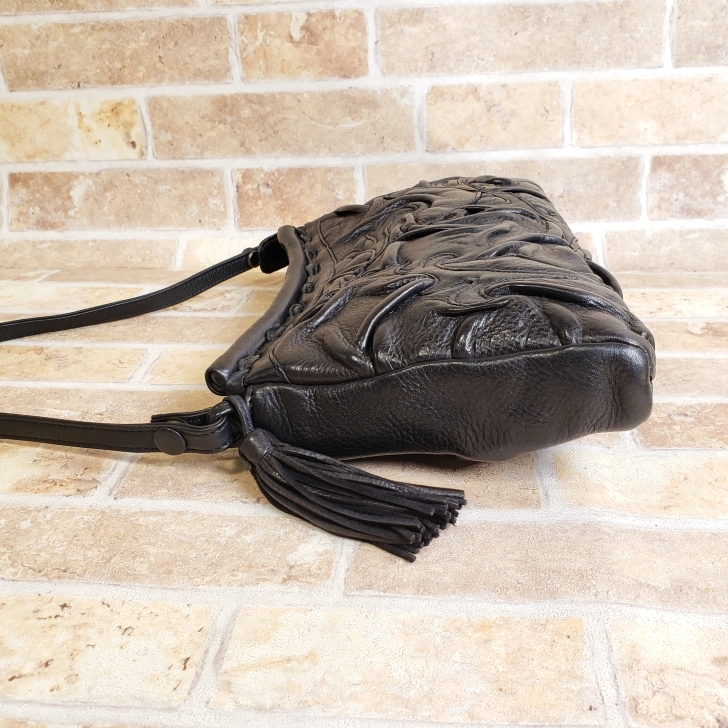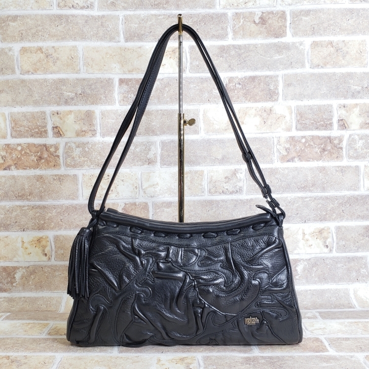 商品説明 | ・パッチワークデザインの レザー 2WAY ショルダーバッグ です。 ショルダーをはずしてクラッチバッグにもしていただけます。 レザータッセルやメタルロゴもポイントです。 ・カラー ブラック(画像参照) ・素材 レザー(本革) ・付属品 なし ・サイズ 縦幅 約15.5cm(中央部) 横幅 約29.0cm(底面付近最大幅 マチ 約3.0cm(底面最大幅) ショルダー長さ 約101.0cm 短くした状態のハンドル高さ 約24.0cm ・収納 外装 背面ファスナーポケット×1 内装 ファスナーポケット×1 ・商品コンディション 外装レザー所々に軽いスレ、スレによる軽い退色があります。(画像参照) その他軽い使用感はありますが、目立ったダメージのないまだまだご愛用いただけるコンディションです。(画像参照) ※個人保管商品ですので、店舗コンディションをお求めの方はご入札をお控えください。ご理解の上ご入札お願いいたします。 |
