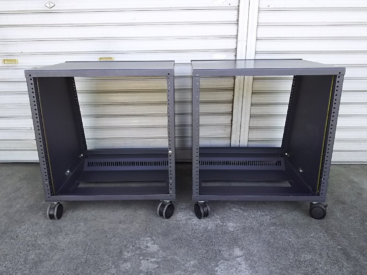 ●ラックマウント金具付きです。(機器取り付けネジなどは付属しません) ●キャスター付きです。 動きもスムーズで動作に問題はありません。 ●発送の場合は家財便Aランクを2個口で発送致します。 送料は1台分のみしか表示されませんので、購入後に2台分に変更させて頂きます。 ご了承ください。 ●付属品: 本体のみ 2台 外観など ・本商品は中古品です。経年・使用に伴う擦り傷/汚れ、若干の凹み痕などあります。 ・外観等を著しく気になさる方や新品に近い美品をご希望のはご遠慮ください。 ・傷、落ちない汚れ、塗装はげ、ネジに錆びているところがございます。 ※保証期間内であっても,水没・落下などお客様が原因で起こった不具合や破損は保証対象外です。