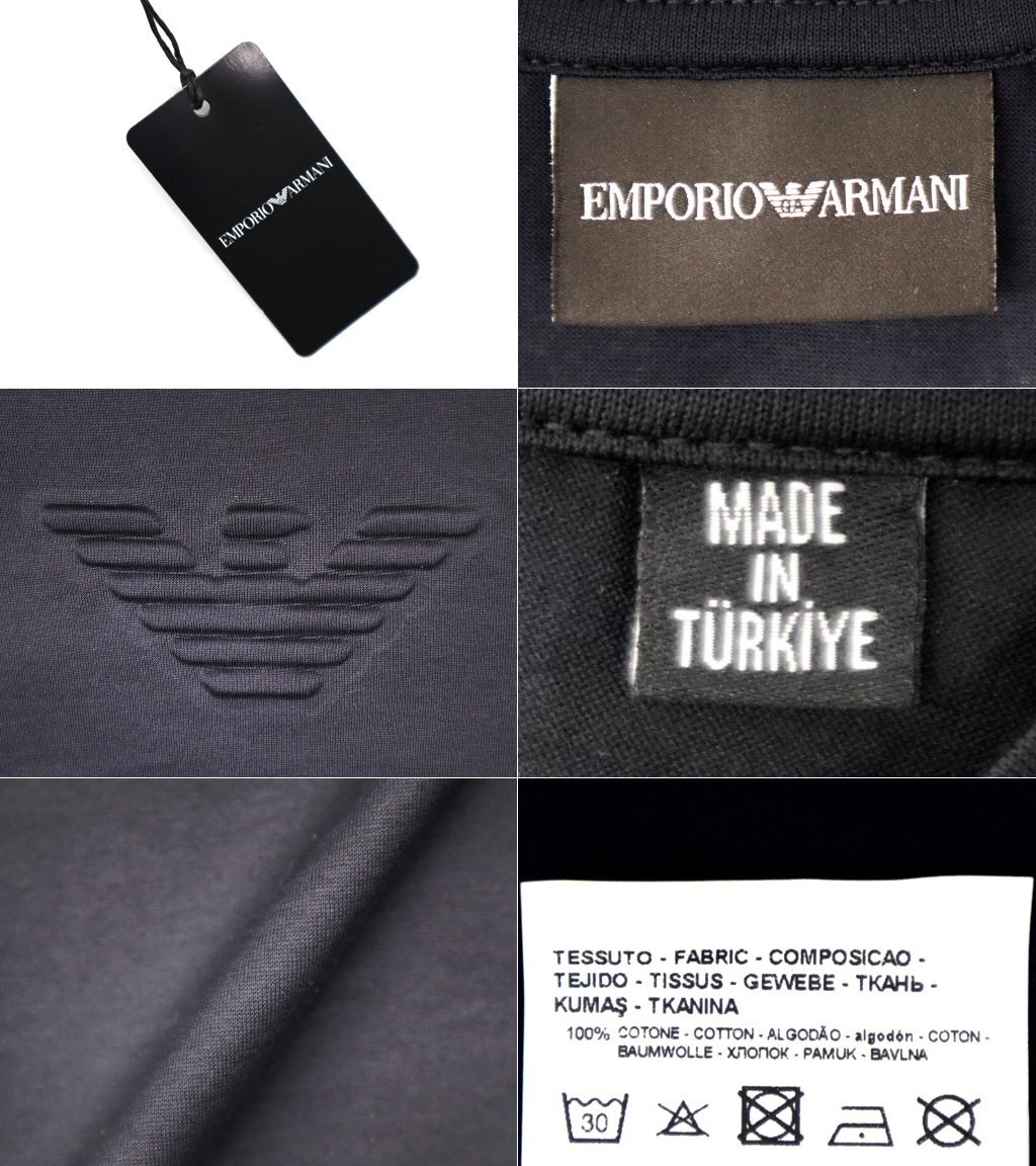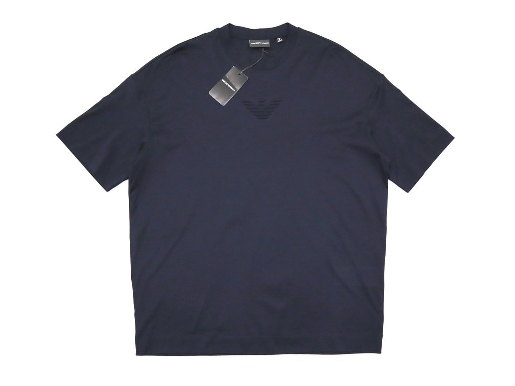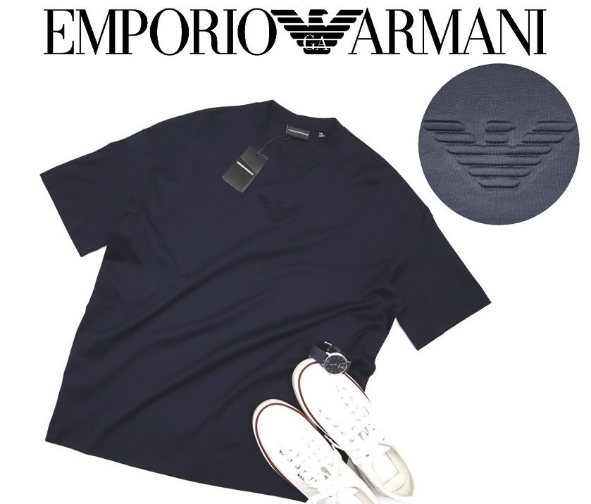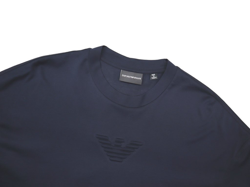 5万新品◆L◆EMPORIOアルマーニ エンボスイーグルロゴ 薄手涼感ストレッチTシャツ 紺ネイビー