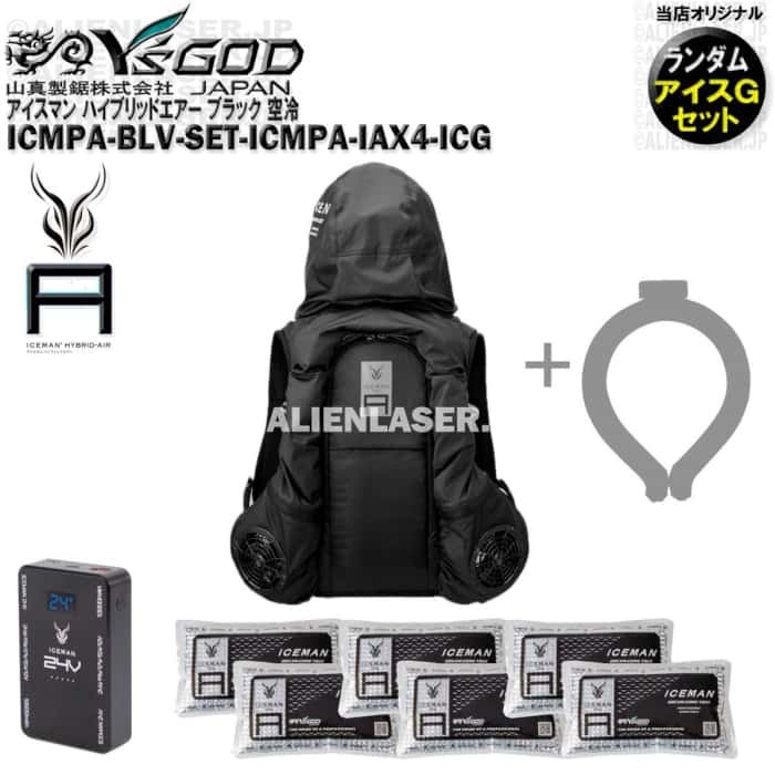 保冷剤合計6個 アイスジー(未洗浄・ランダム)付 ICMPA-BLV-SET アイスマン プロエアー ブラック + 保冷剤4個 山真