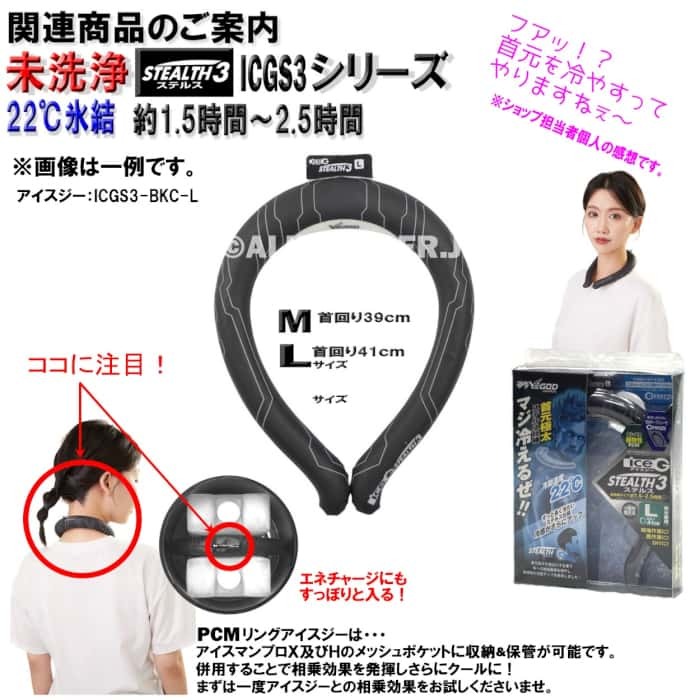 「アイスマン ハイブリッドエアー(プロではありません)」空冷ベスト※水冷ではありません!サイズ目安。FREEサイズM-5L相当。付属品。アイスマンAR24Vファン×2 アイスマンAR24Vバッテリー×1 アイスエアー×2 ファンケーブル×1 ACアダプター×1 充電ケーブル×1 取扱説明書×1(1)PSマークの種類:PSE(2)事業者名:山真製鋸株式会社(3)製品本体に貼付されている登録検査機関名称:関東経済産業局「アイスエアー」アイスマンAIR用保冷剤。「【未洗浄】アイスジー 」【重要】初回使用時、ぬるま湯で石鹸を使い洗浄してからご使用くださいませ。使用目安1時間-2.5時間。首回り:M39cm41cmサイズ・色はランダムです。※モニターの発色具合により、実際のものと色が異なる場合がございます。
