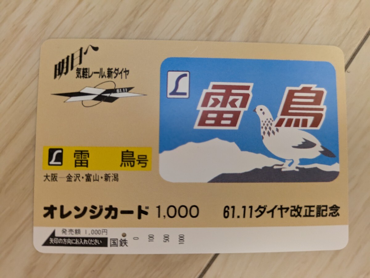 使用済オレンジカード 国鉄 雷鳥 ヘッドマーク 61.11ダイヤ改正記念【一つ穴】です